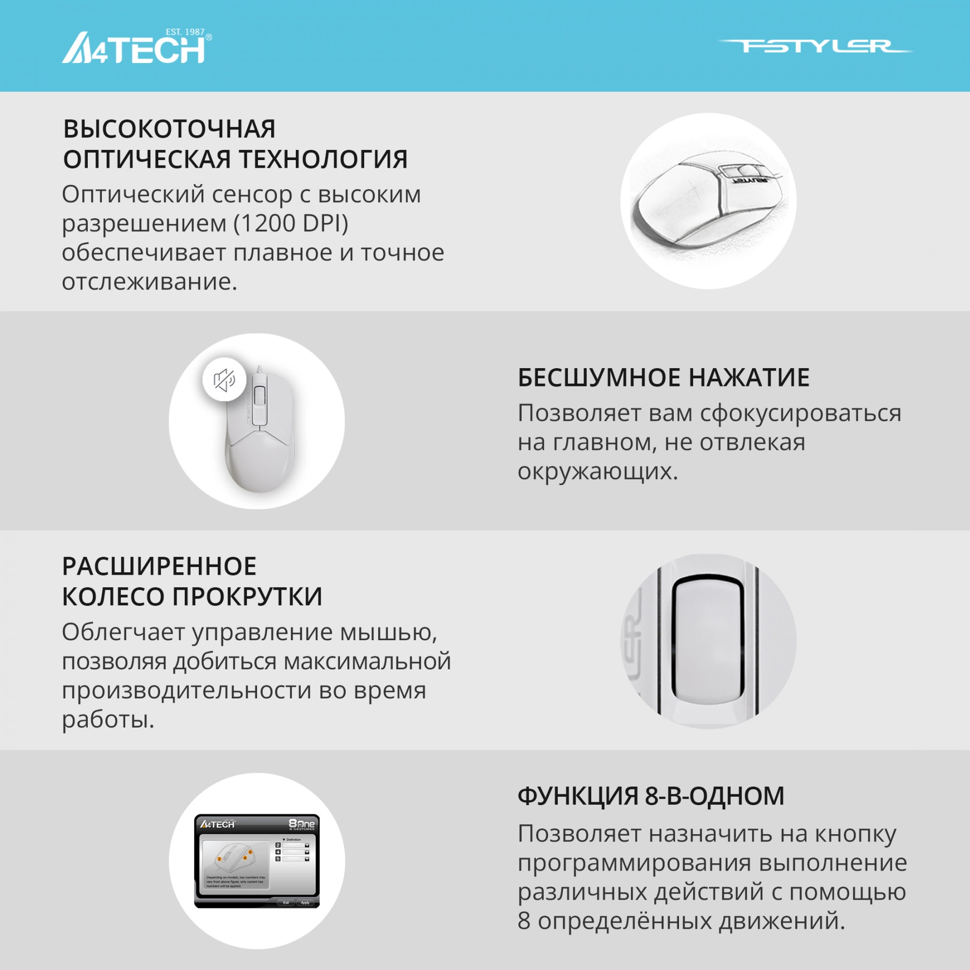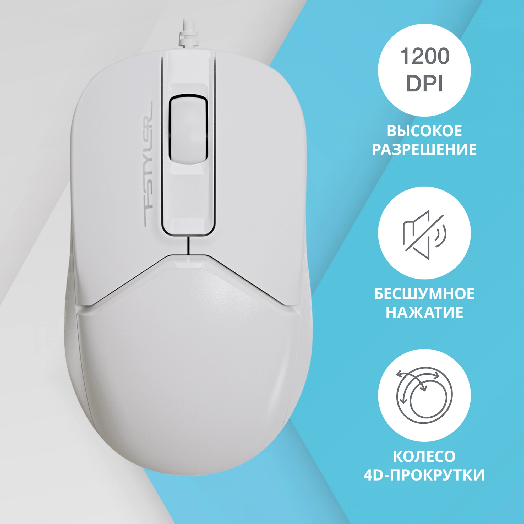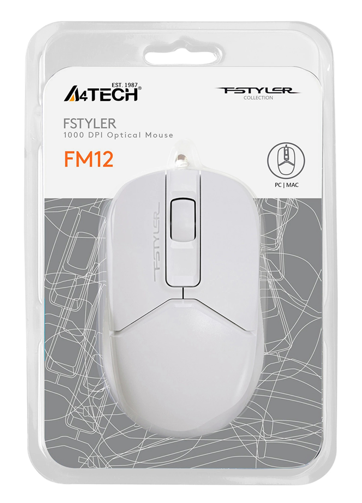 Мышь A4Tech - Fstyler FM12S, Проводная, USB, Optical, 3 btns, цвет белый, FM12S WHITE