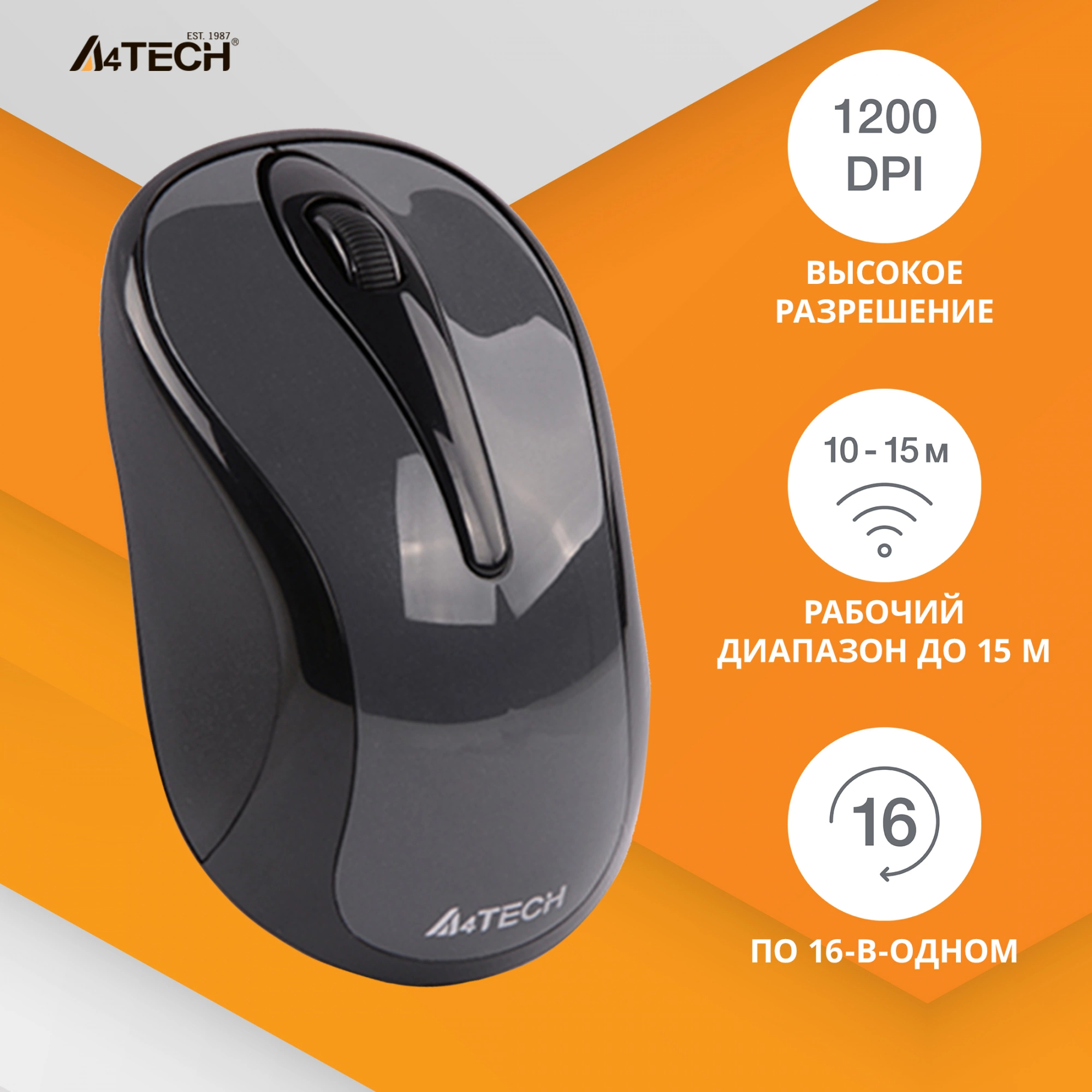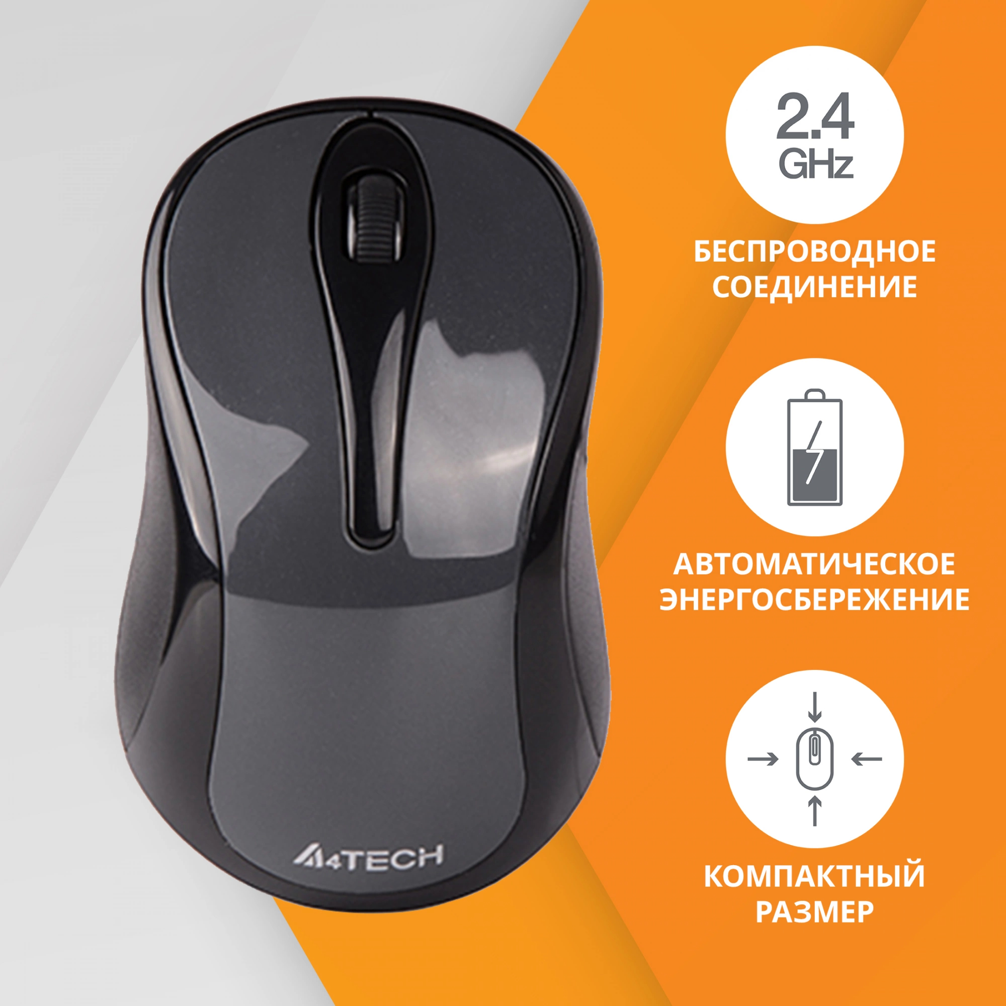 Мышь A4Tech - G3-280N, Беспроводная, Optical, 1200 dpi, 3 btns, цвет серый, G3-280N