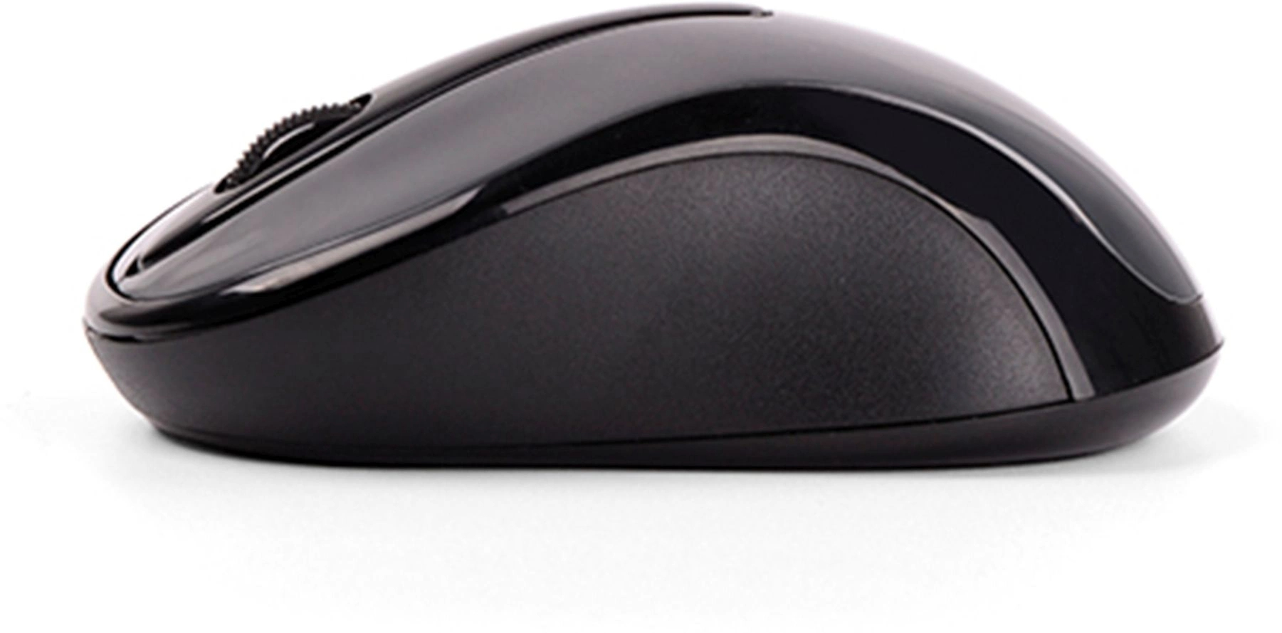 Эта компактная беспроводная мышка отлично ложится в ладонь и не занимает много места в сумке. Дальность работы позволяет свободно перемещаться по комнате, не теряя сигнала. Сенсор достаточно точен, чтобы использовать устройство для базовых задач и лёгких игр.