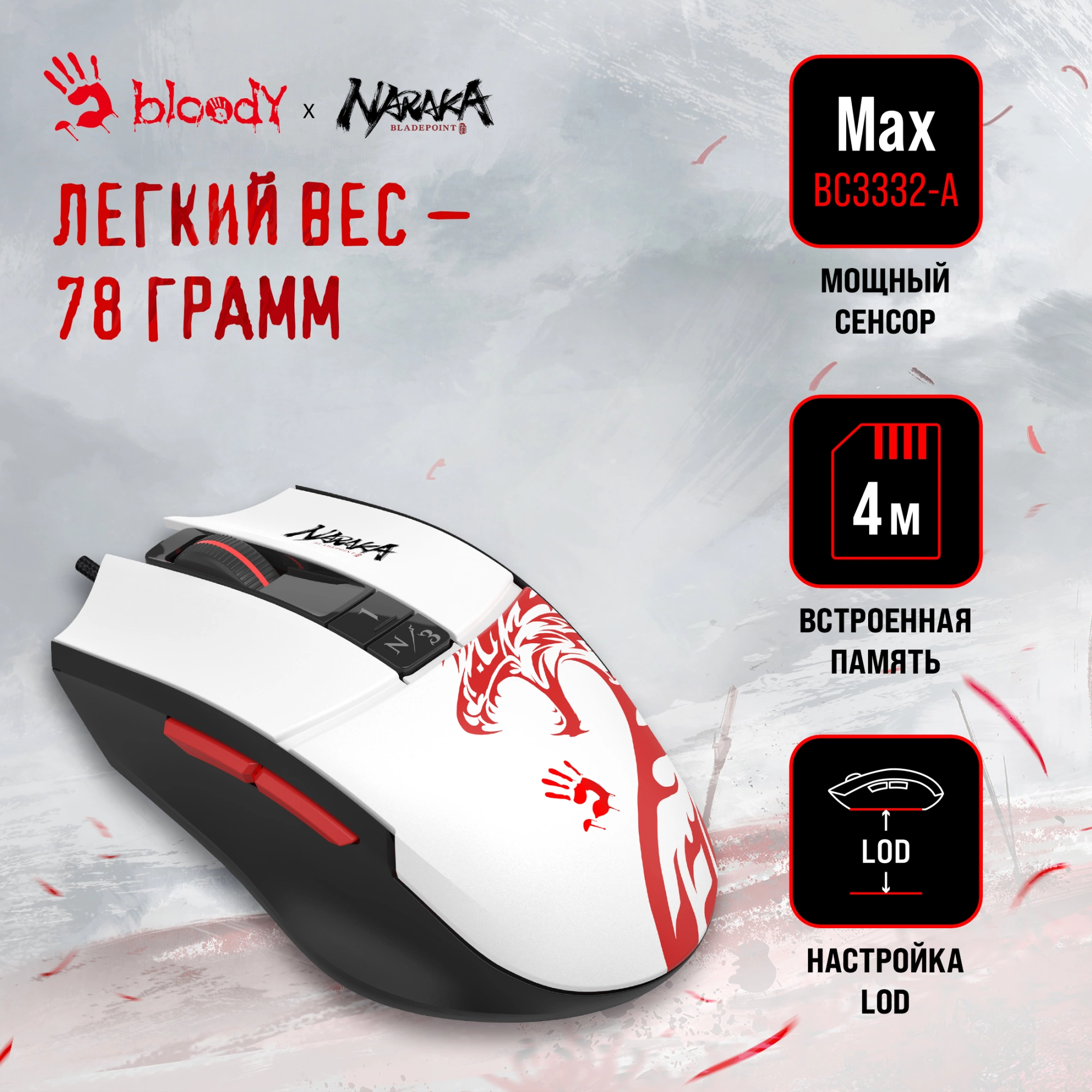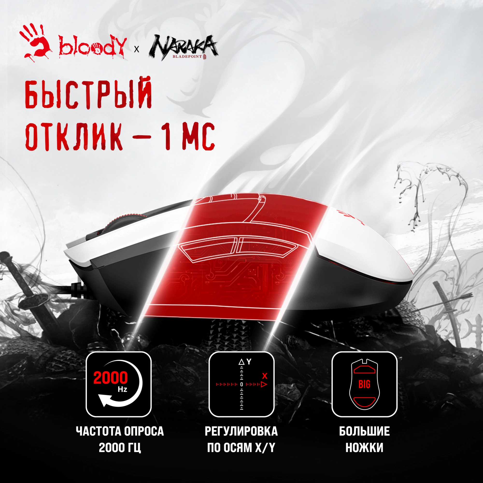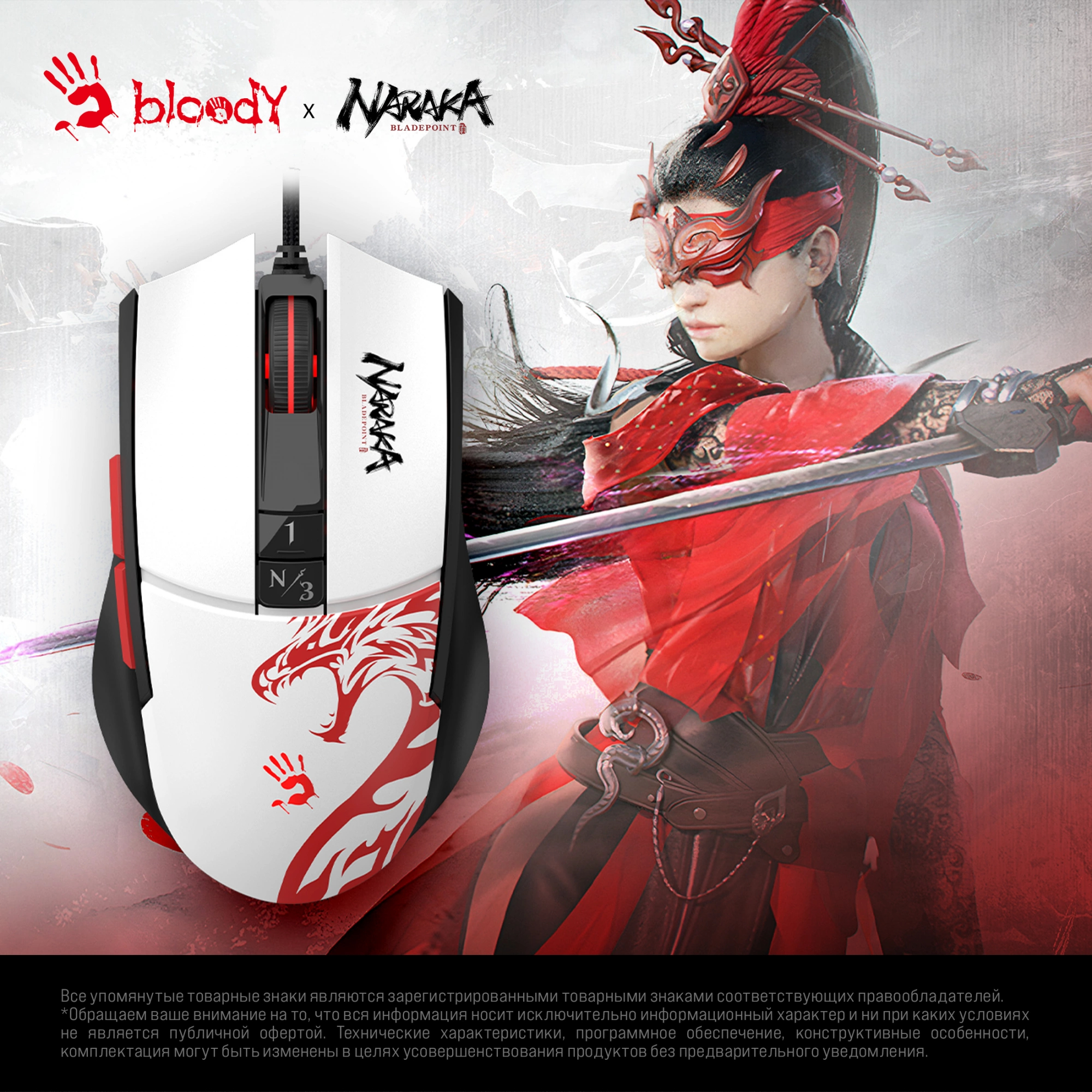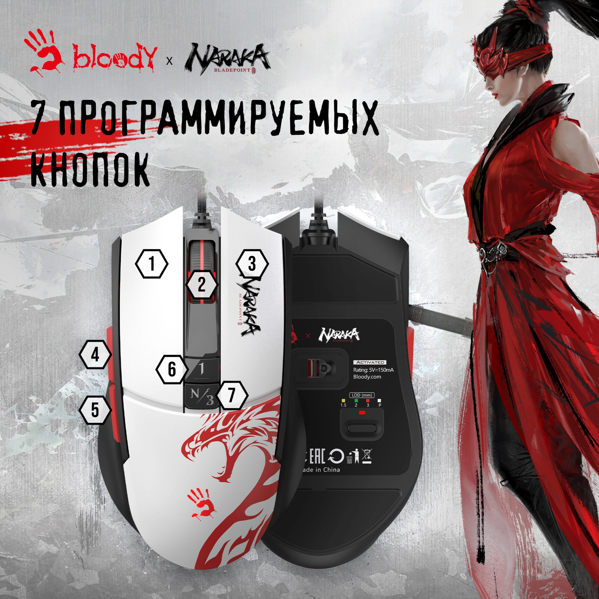 Мышь A4Tech - L65 Max, Проводная, USB, Optical, 100 - 12000 dpi, 6 btns, gaming, цвет белый, L65 MAX NARAKA