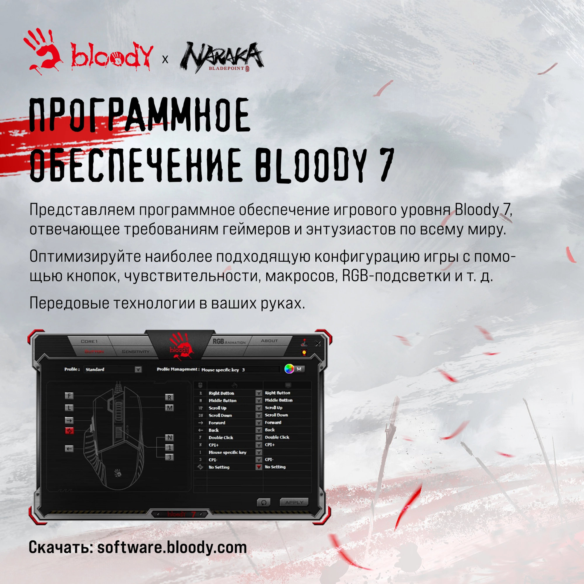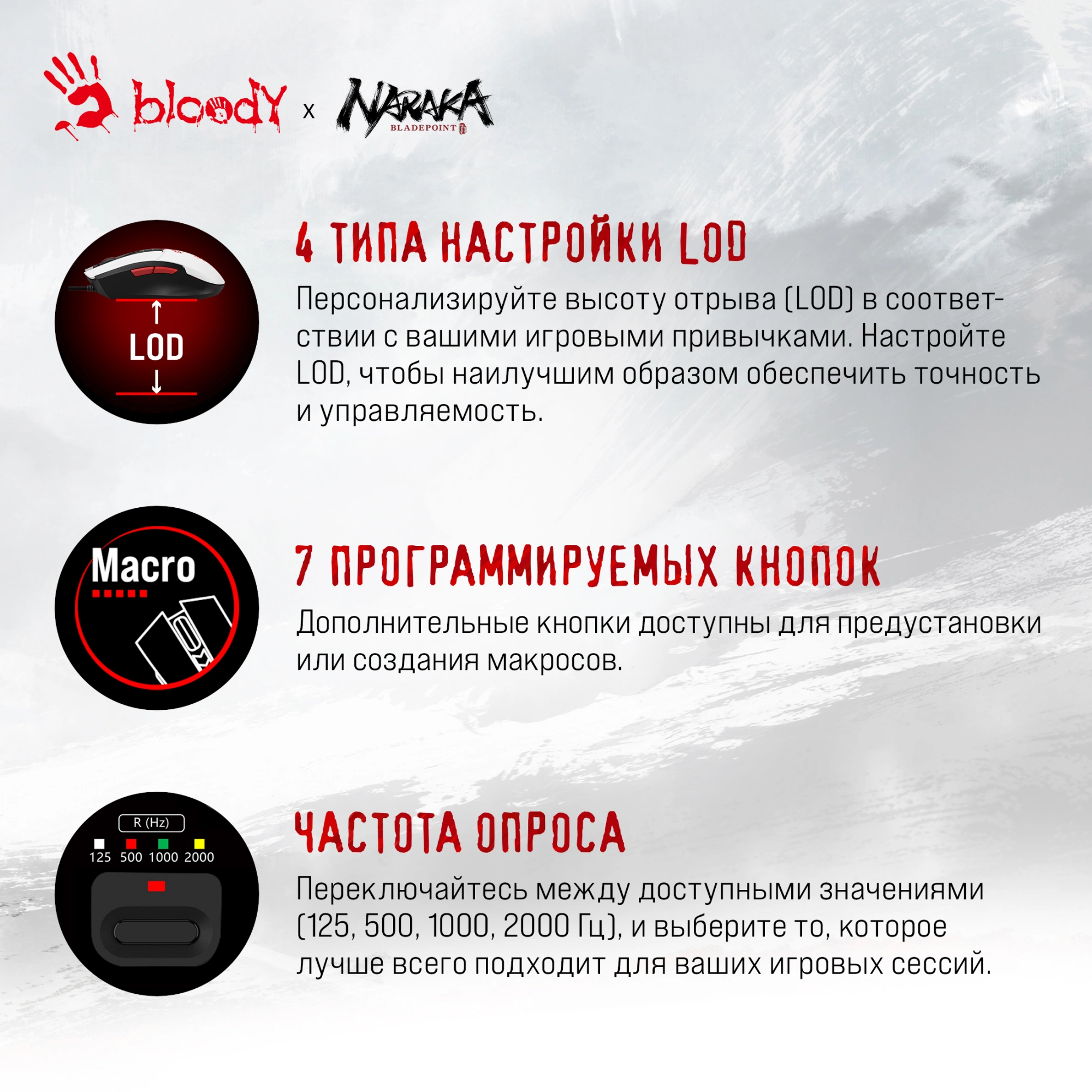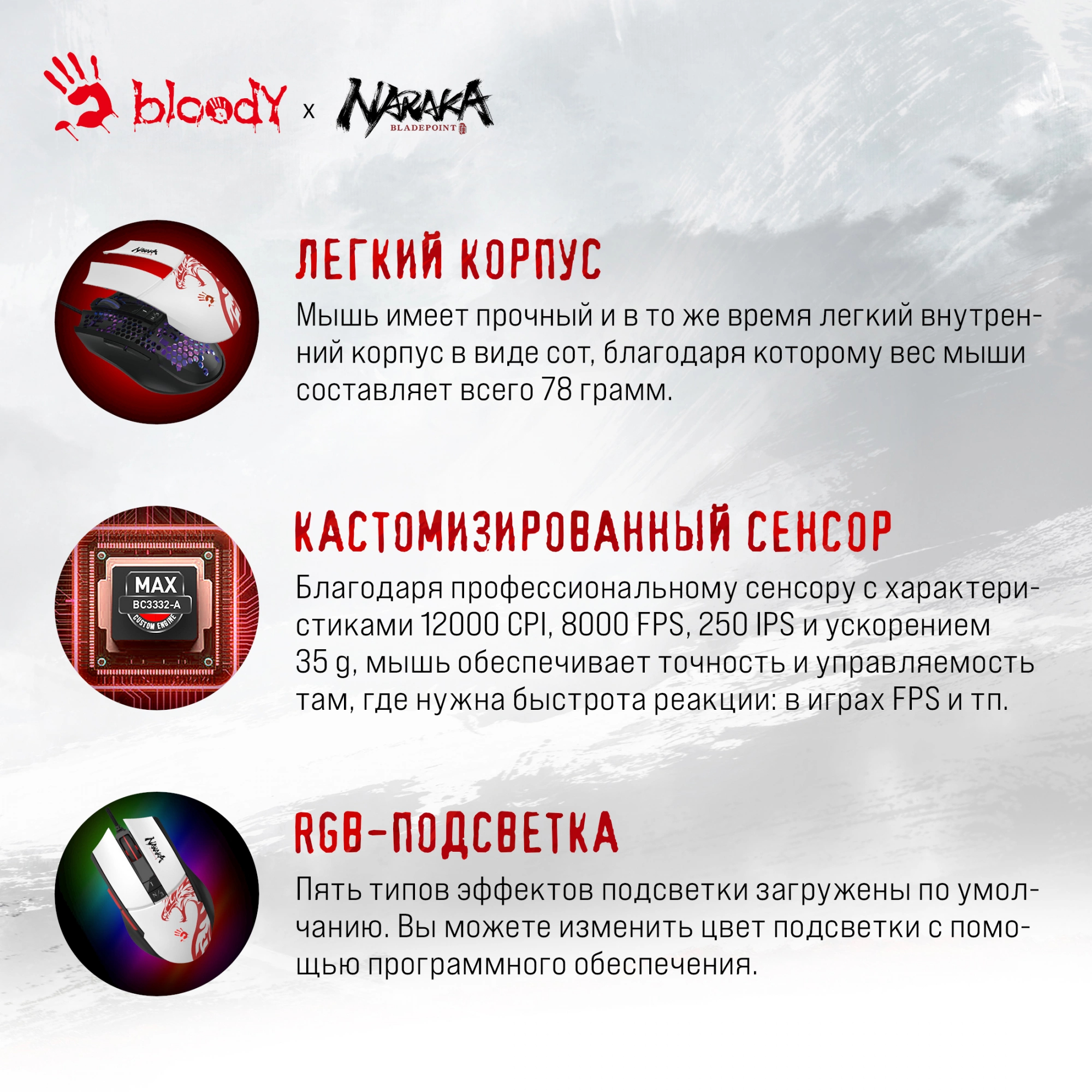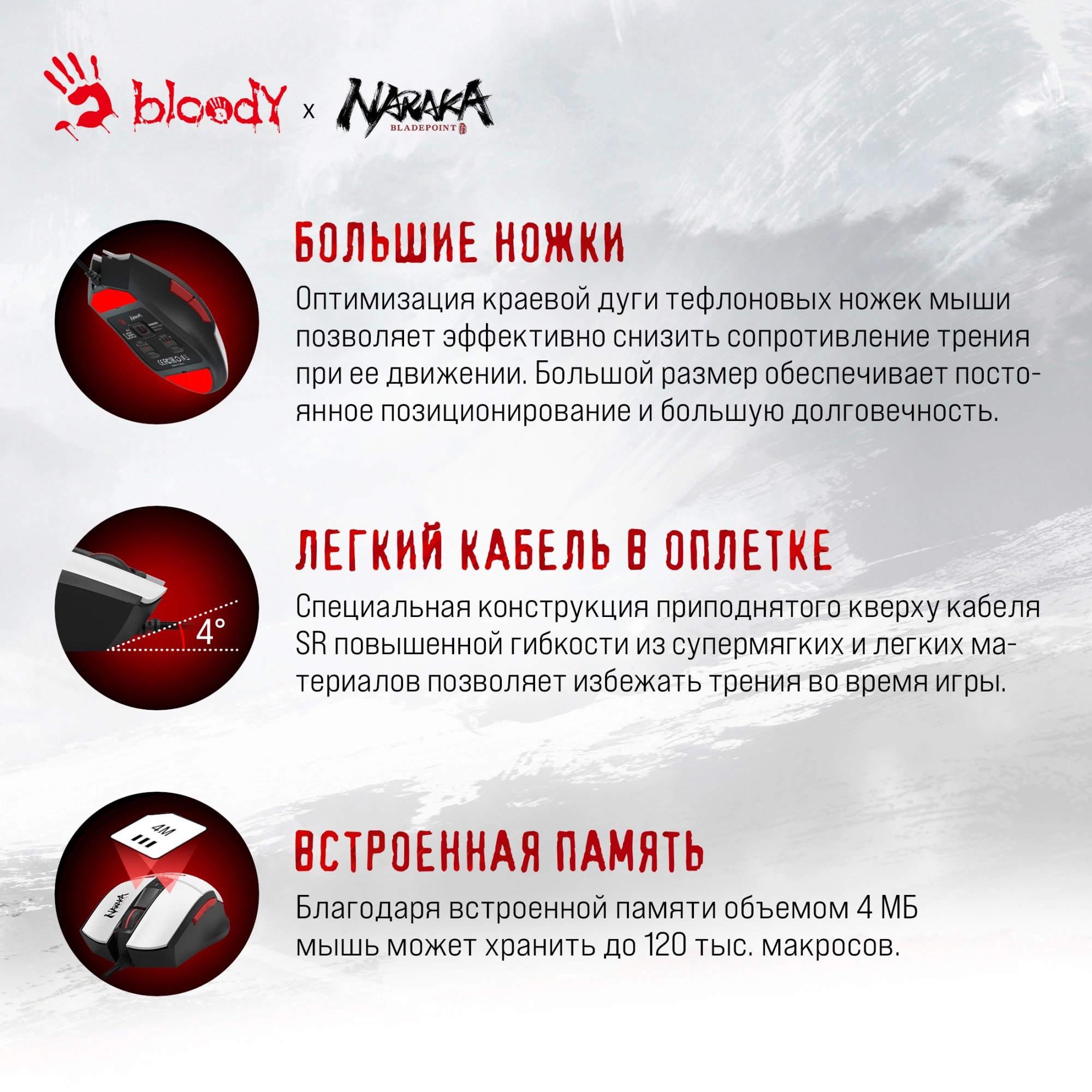 Мышь A4Tech - L65 Max, Проводная, USB, Optical, 100 - 12000 dpi, 6 btns, gaming, цвет белый, L65 MAX NARAKA