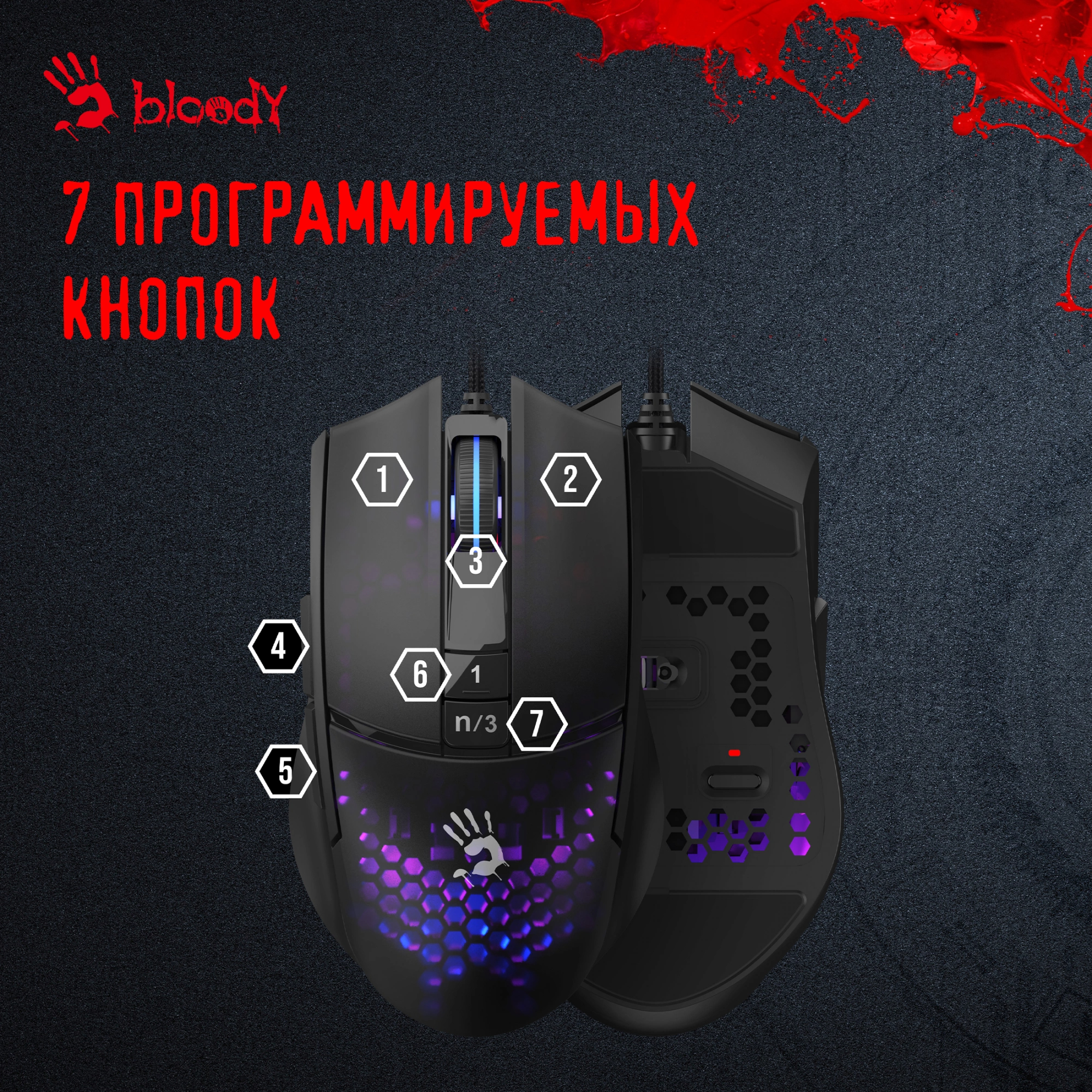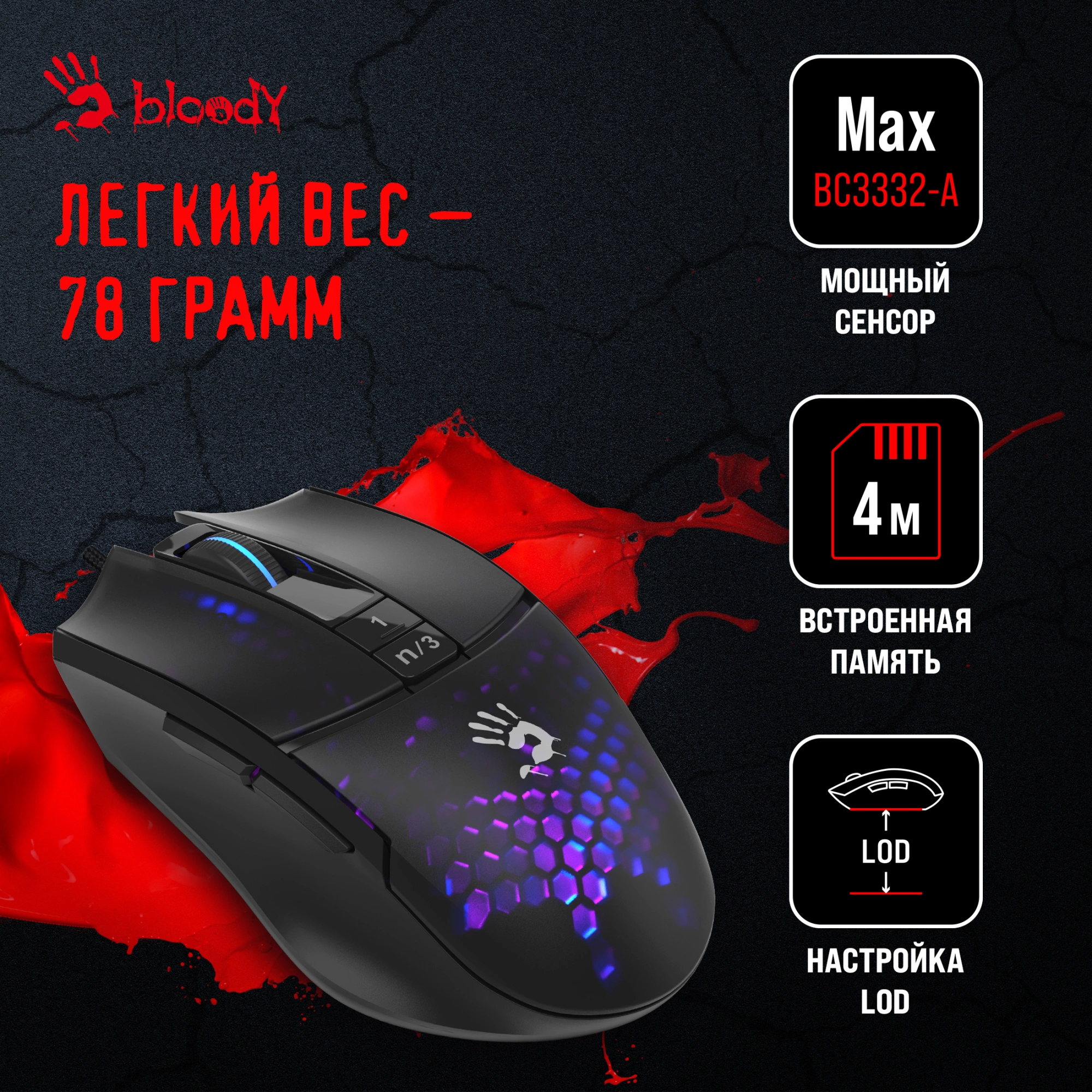 Выбрать товарыМышь A4Tech - L65 Max, Проводная, USB, Optical, 100 - 12000 dpi, 6 btns, gaming, цвет чёрный, L65 MAX/HONEYCOMB