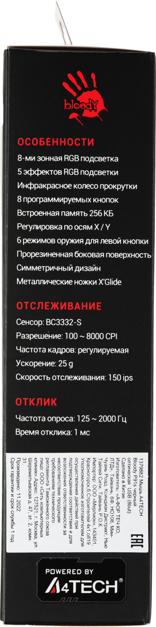 Мышь A4Tech - P91s, Проводная, USB, Optical, 8 btns, gaming, цвет чёрный, P91S BLACK ACTIVATED