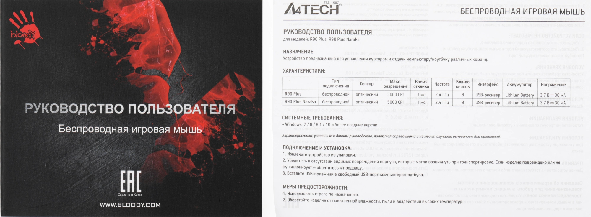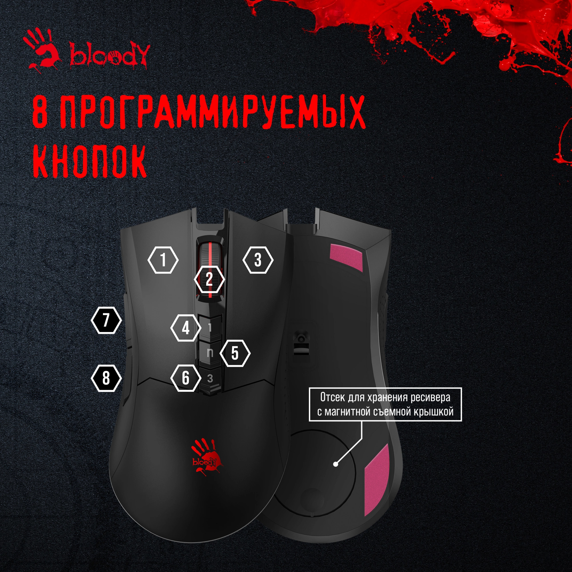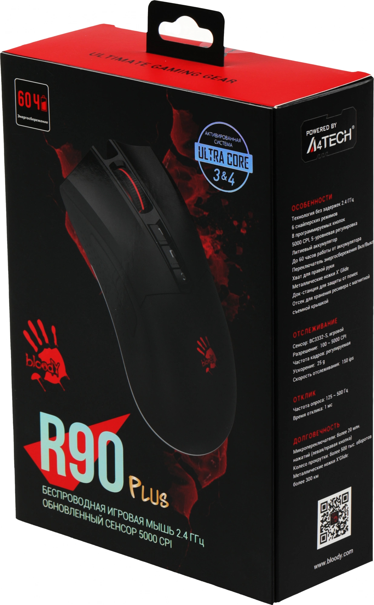 Мышь A4Tech - R90 PLUS, Беспроводная, Optical, 7 btns, цвет чёрный, R90 PLUS