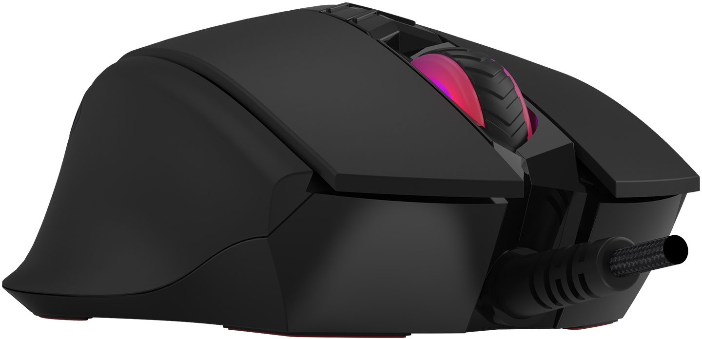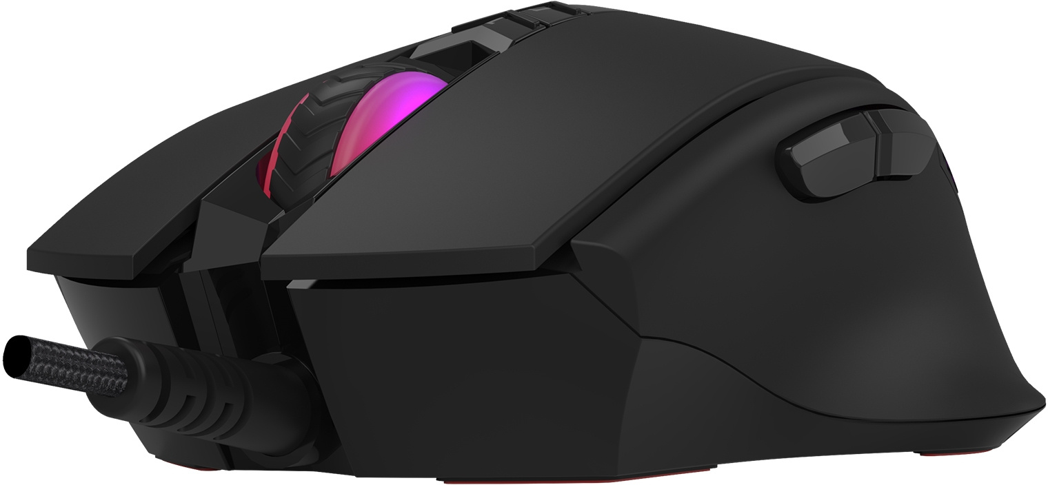 Мышка с агрессивным игровым стилем, проводная. DPI регулируется, максимальный довольно высок. Подсветка присутствует, можно отключить. Эргономичная форма для правши, боковые кнопки не мешают. Шнур прочный.
