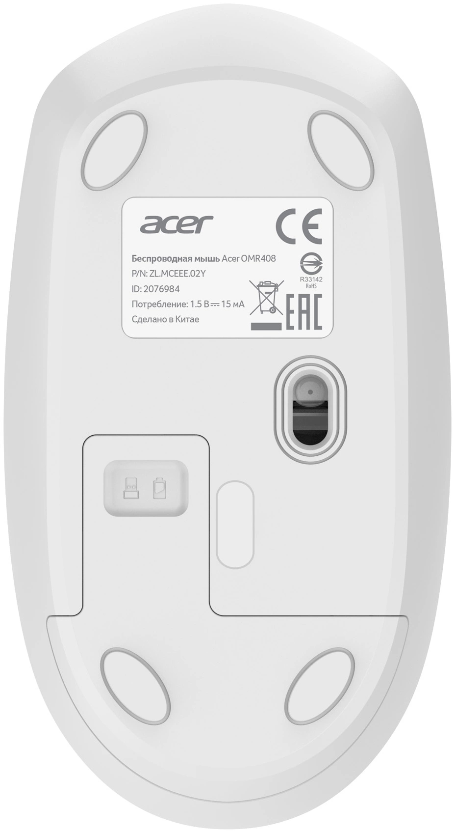 Мышь Acer OMR408 Беспроводная белый, ZL.MCEEE.02Y