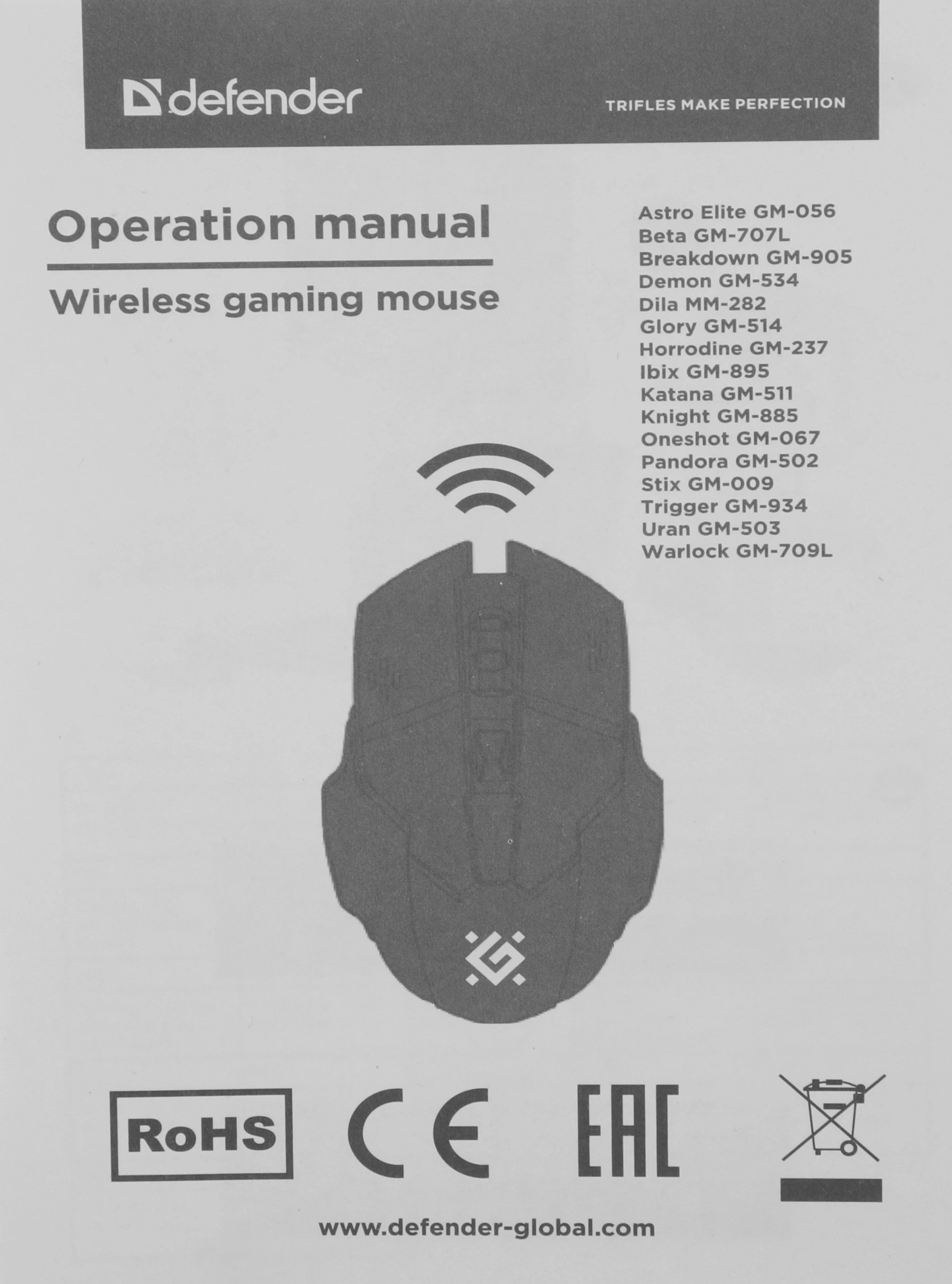 Выбрать товарыМышь DEFENDER - Pandora GM-502, Беспроводная, 10 метров, USB, Optical, 1200 - 3200 dpi, 6 btns, gaming, цвет белый, 52502