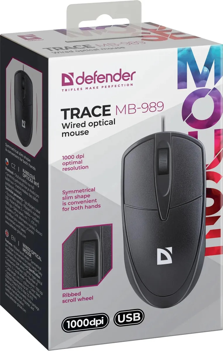 Мышь DEFENDER - Trace MB-989, Проводная, USB, Optical, цвет чёрный, 52989