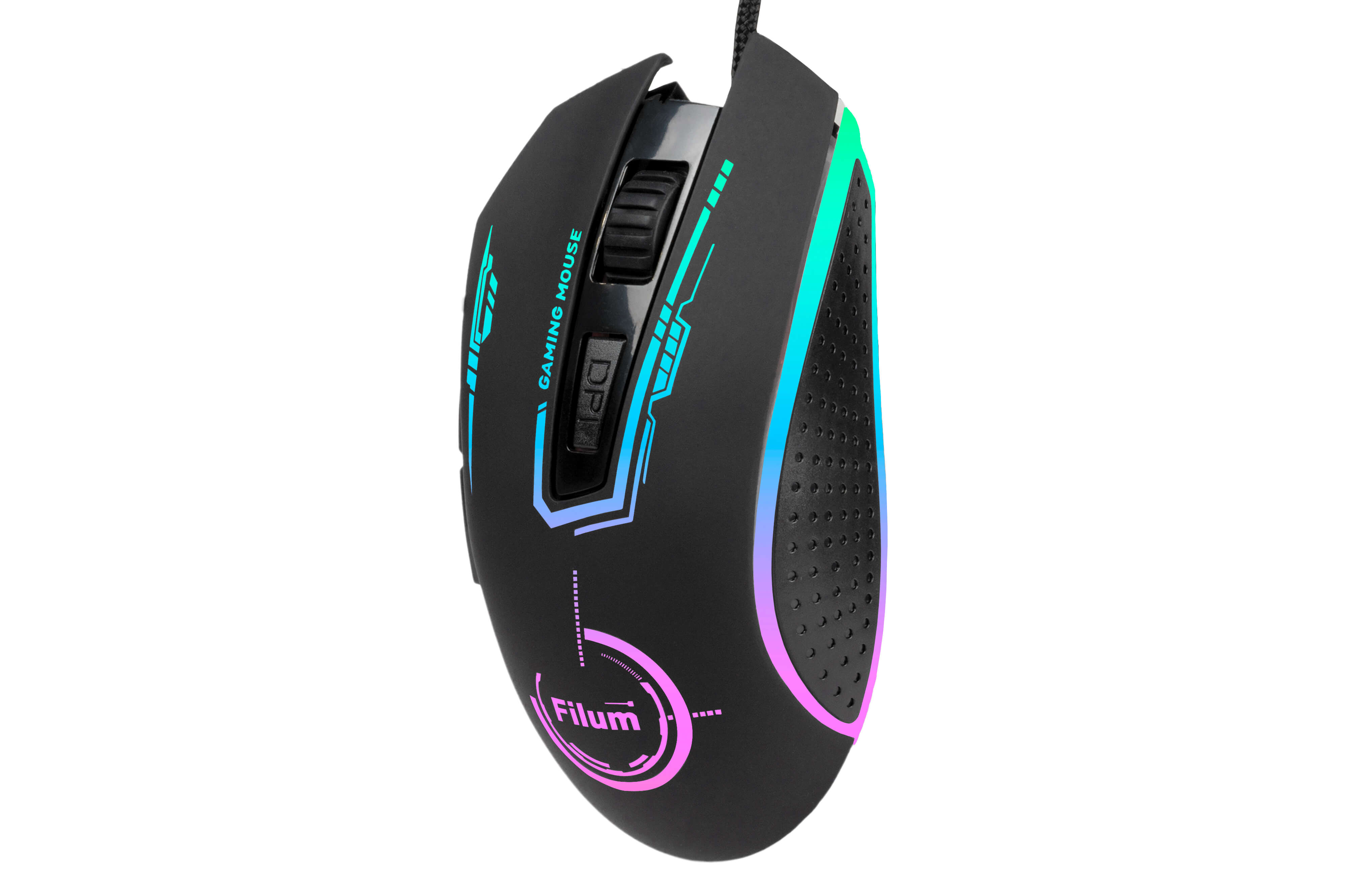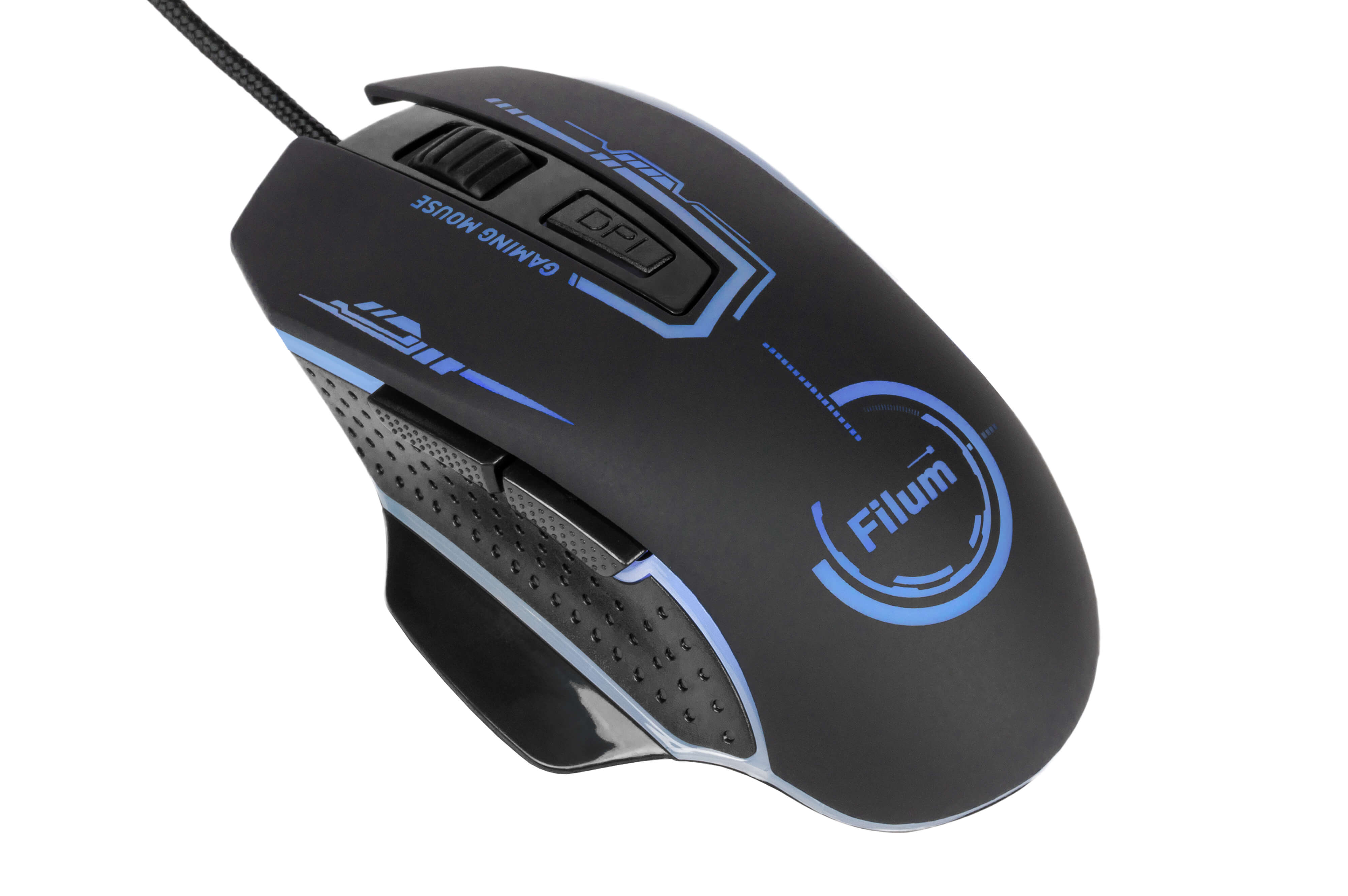 Мышь Filum - GM10, Проводная, USB, Optical, 6 btns, gaming, цвет чёрный, FL-GM10-BK