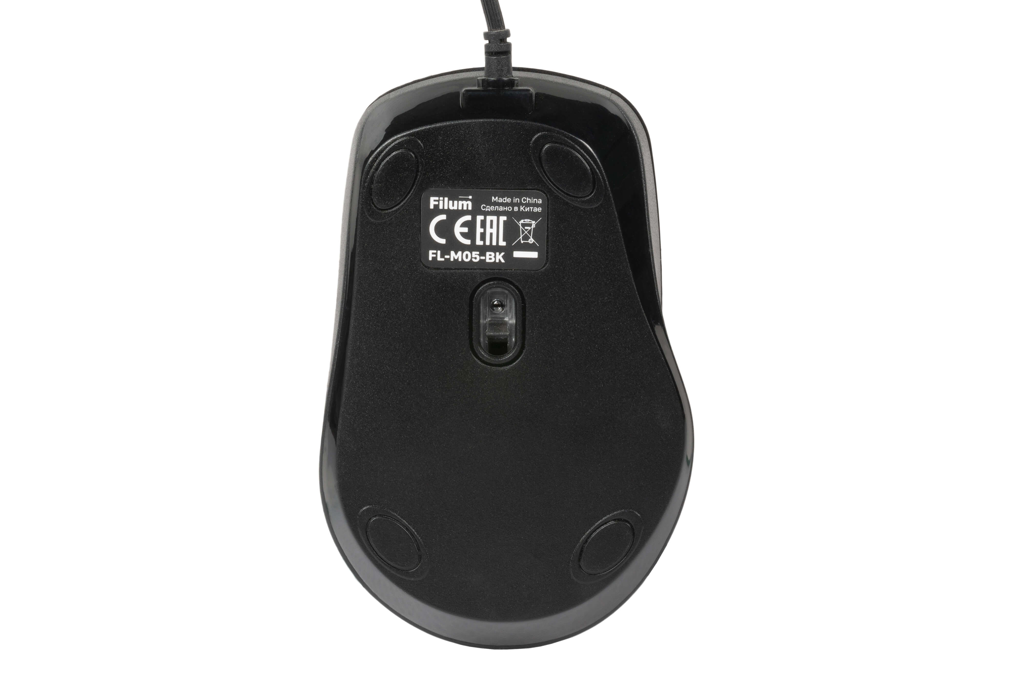 Мышь Filum - M05, Проводная, USB, Optical, 800 dpi, 4 btns, цвет чёрный, FL-M05-BK