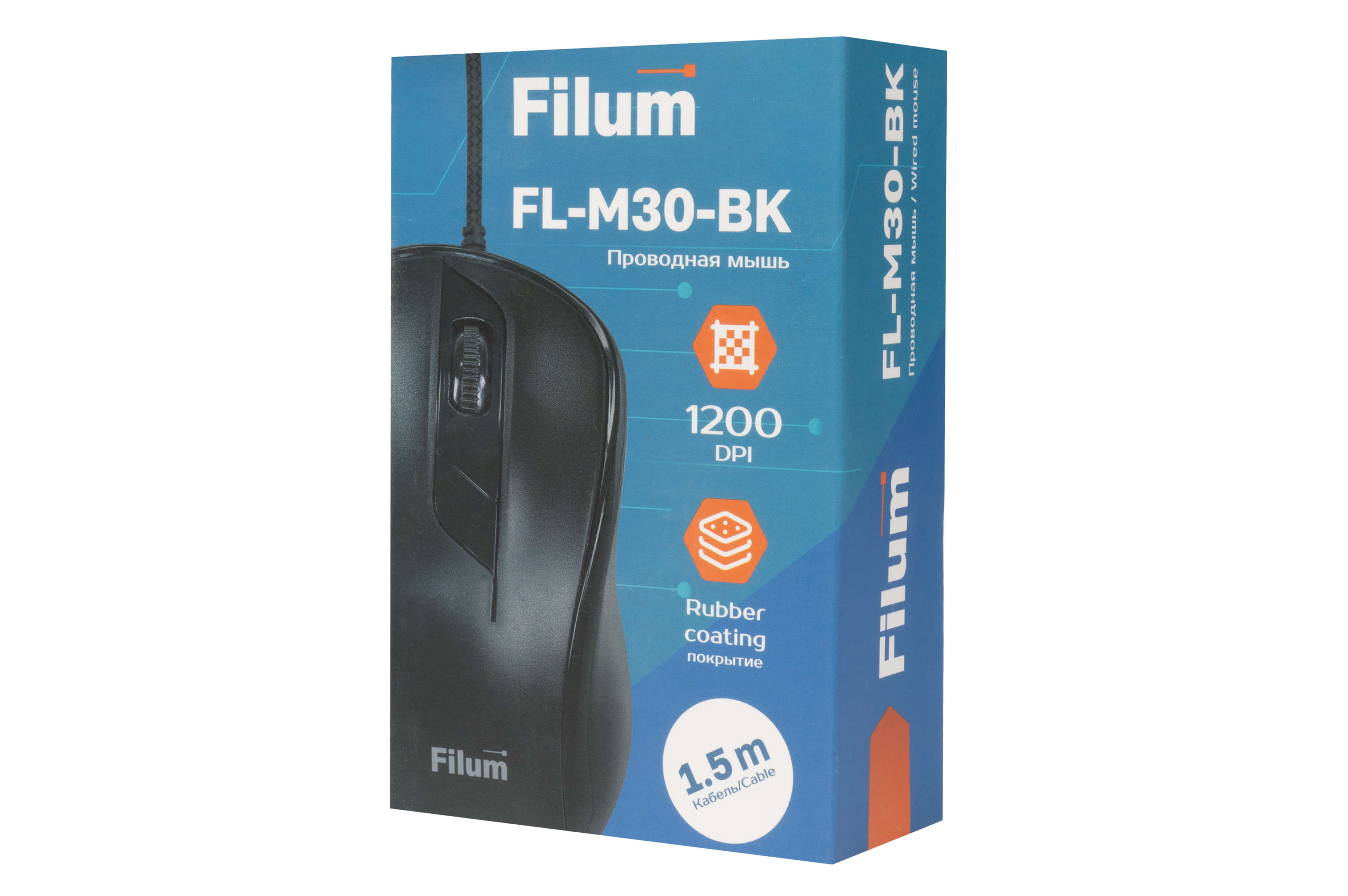 Выбрать товарыМышь Filum - M30, Проводная, USB, Optical, 800 dpi, 4 btns, цвет чёрный, FL-M30-BK