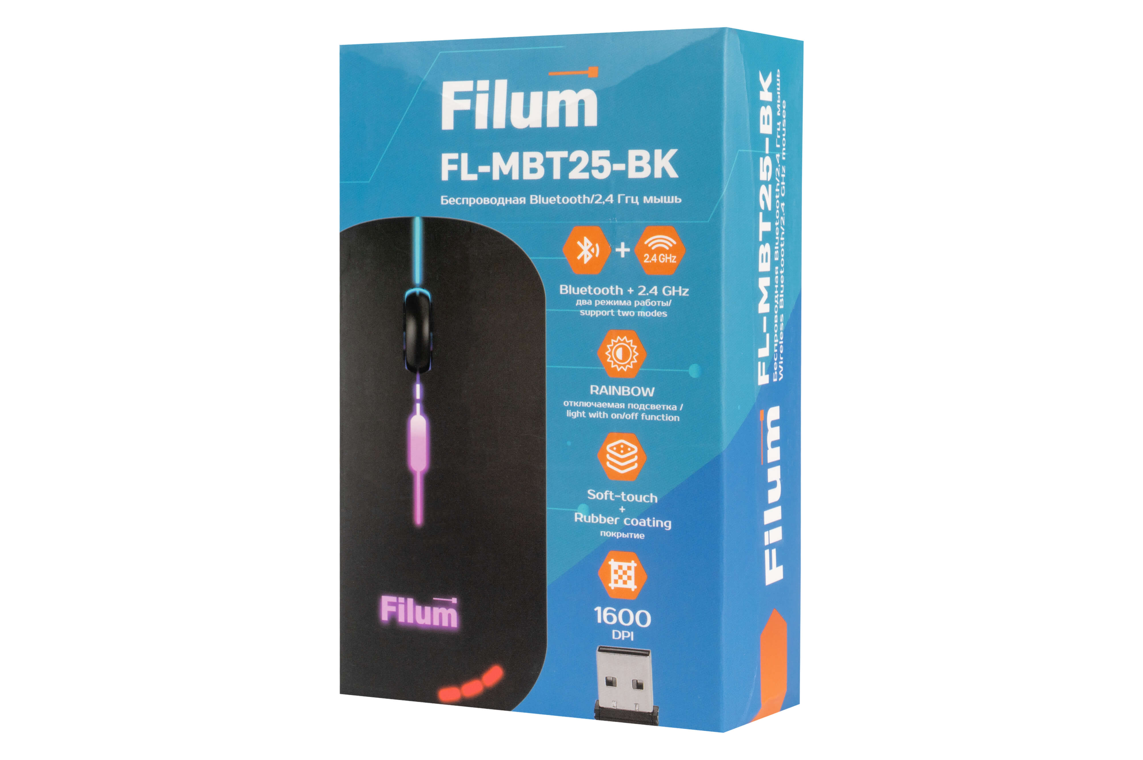 Мышь Filum - MBT25, Беспроводная, USB, Optical, 800 dpi, 4 btns, цвет чёрный, FL-MBT25-BK