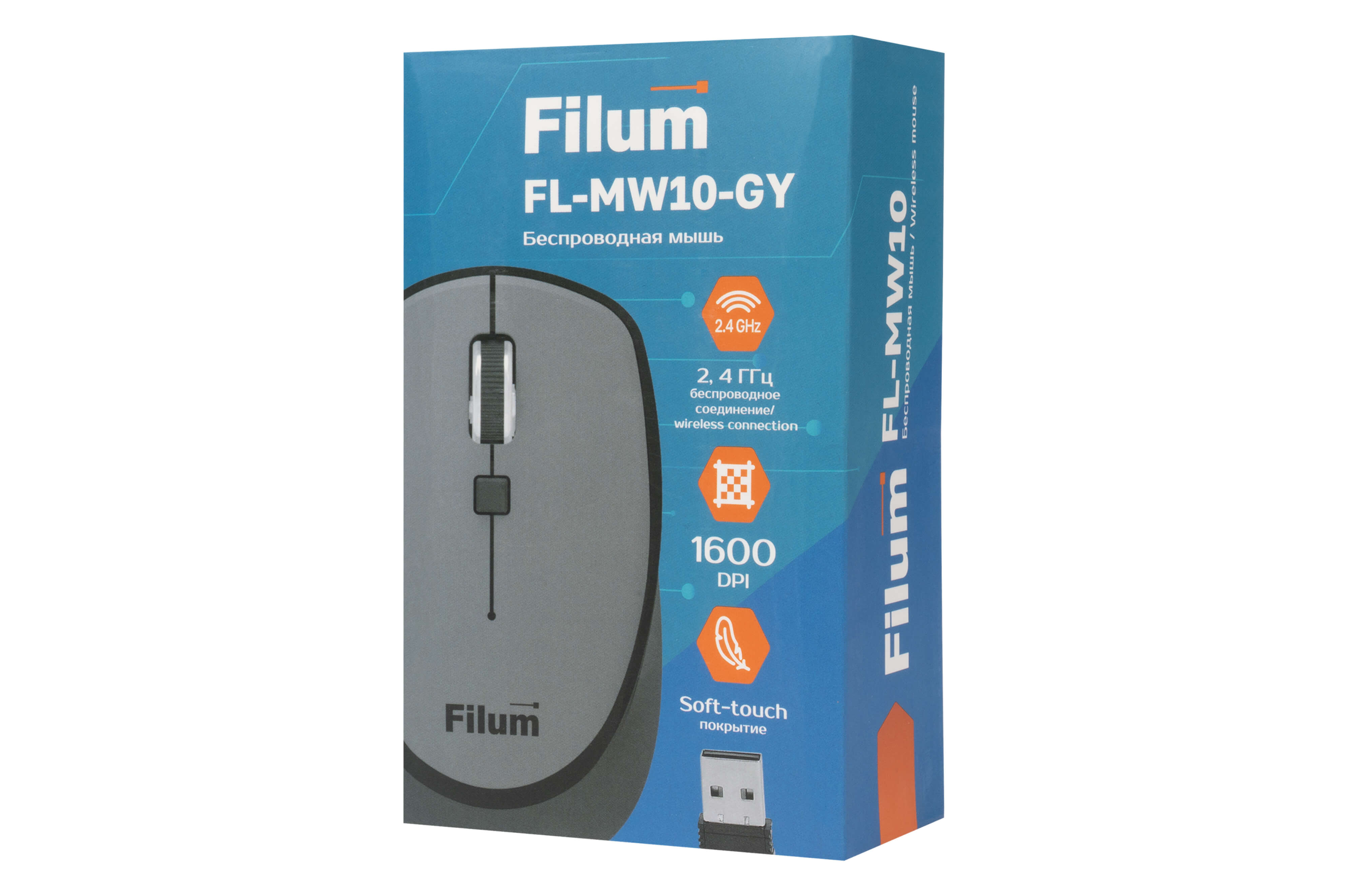 Мышь Filum - MW10, Беспроводная, 2.4 ГГц, Optical, 800 dpi, 4 btns, цвет серый, FL-MW10-GY