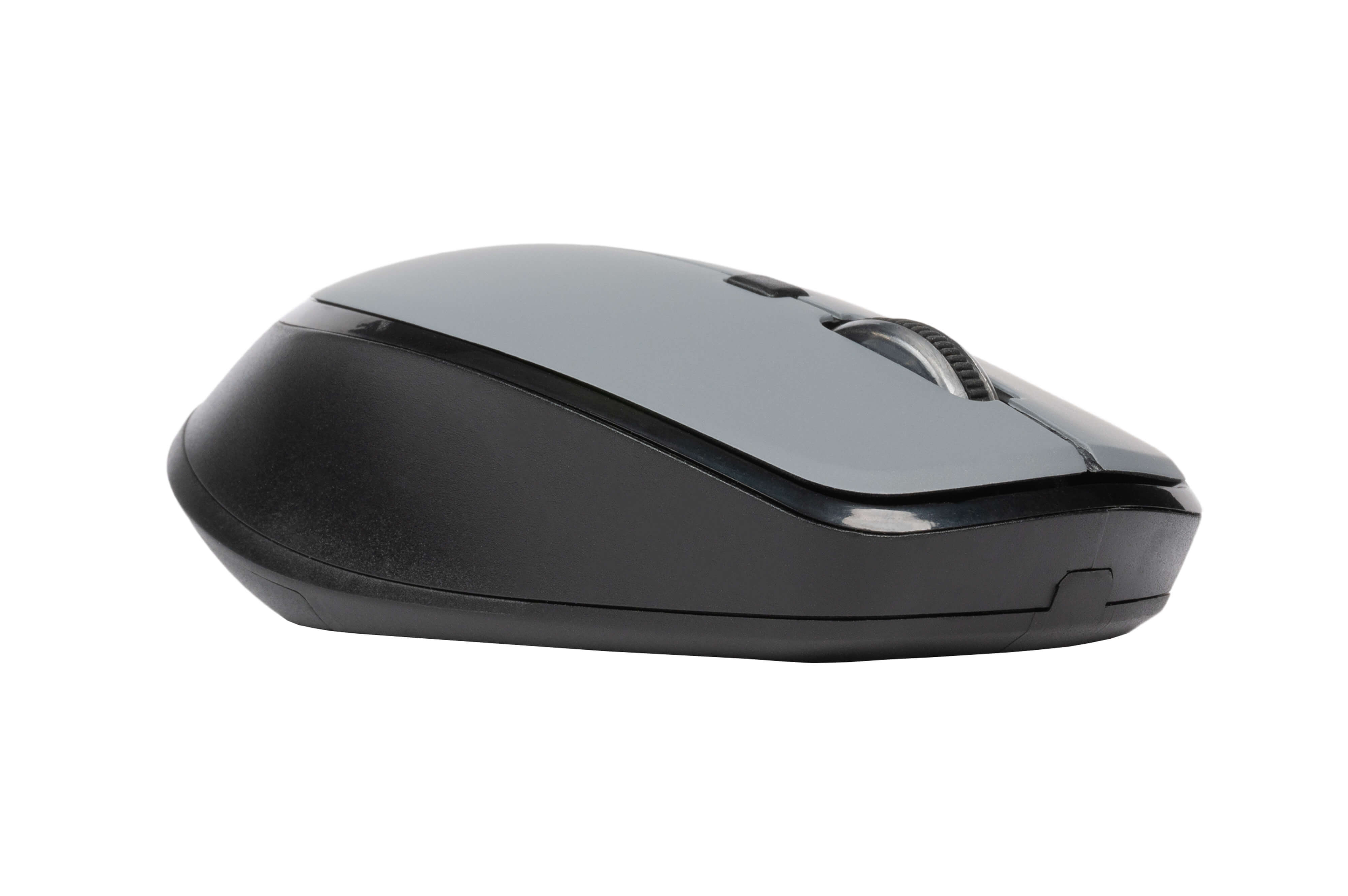 Стильная беспроводная мышь в сером оттенке. Механика клика приятная, громкости нажатий почти не слышно. Подключение через мини-приёмник, задержек нет.