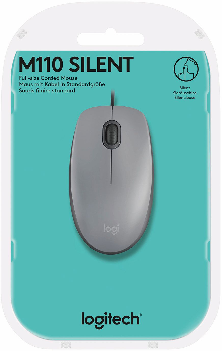 Мышь Logitech - M110, Проводная, USB, Optical, 2 btns, цвет серый, 910-006760