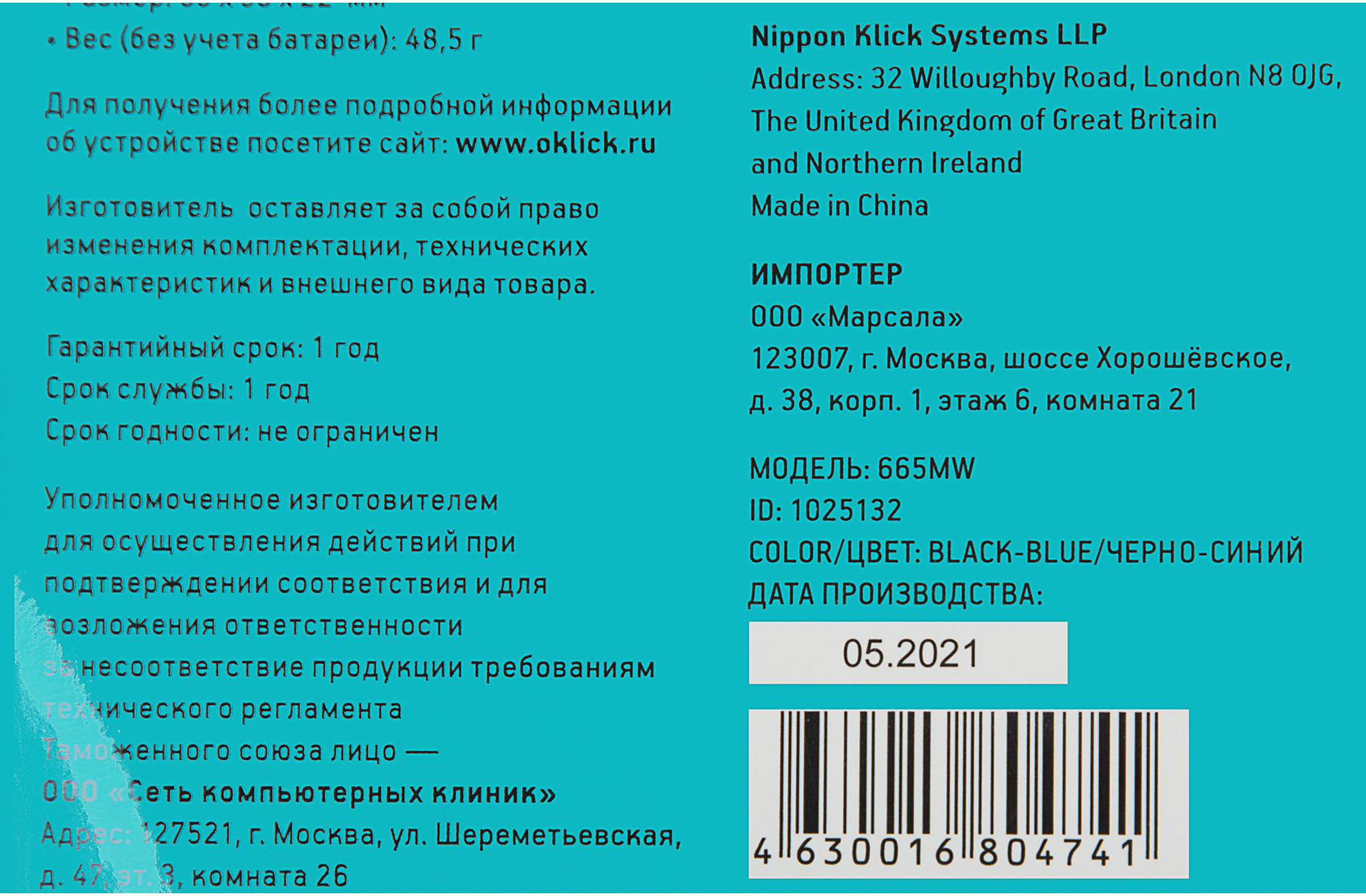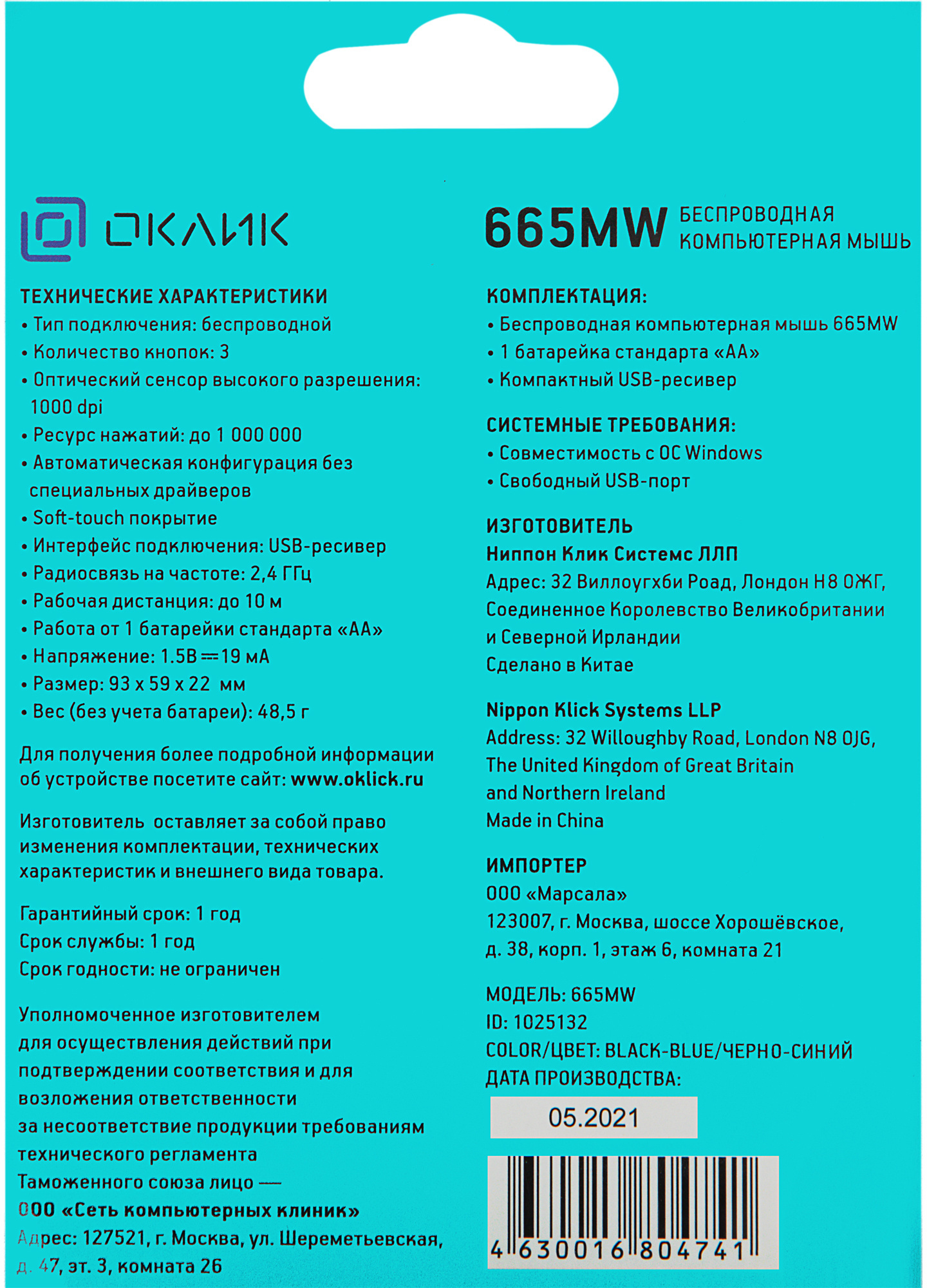 OKLICK 665MW: Беспроводная мышь (1025132)