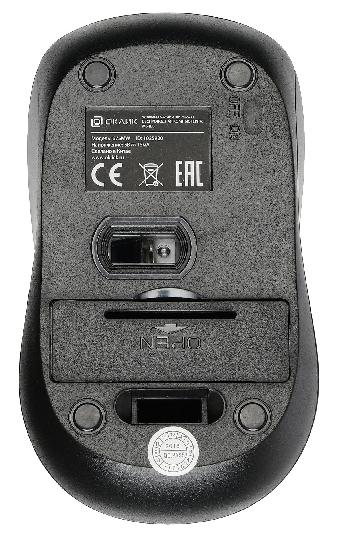 Мышь OKLICK - 675MW, Беспроводная, Optical, 1200 dpi, 3 btns, цвет чёрный, 1025918