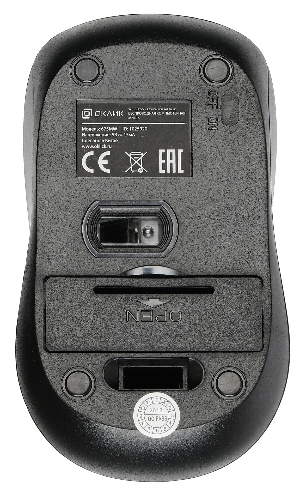 Мышь OKLICK - 675MW, Беспроводная, Optical, 1200 dpi, 3 btns, цвет чёрный, 1025920