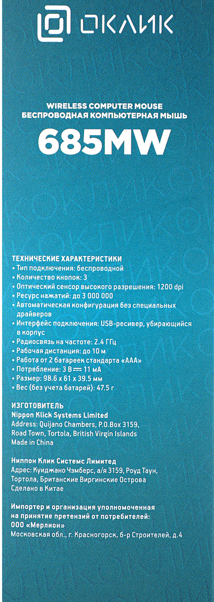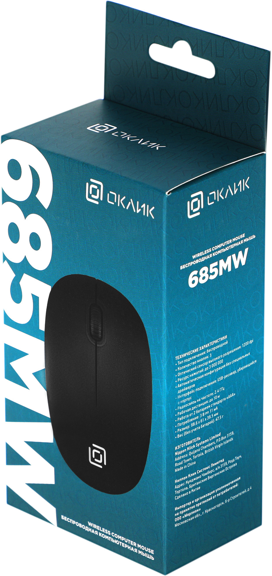 Мышь OKLICK - 685MW, Беспроводная, Optical, 1200 dpi, 3 btns, цвет чёрный, 1058946