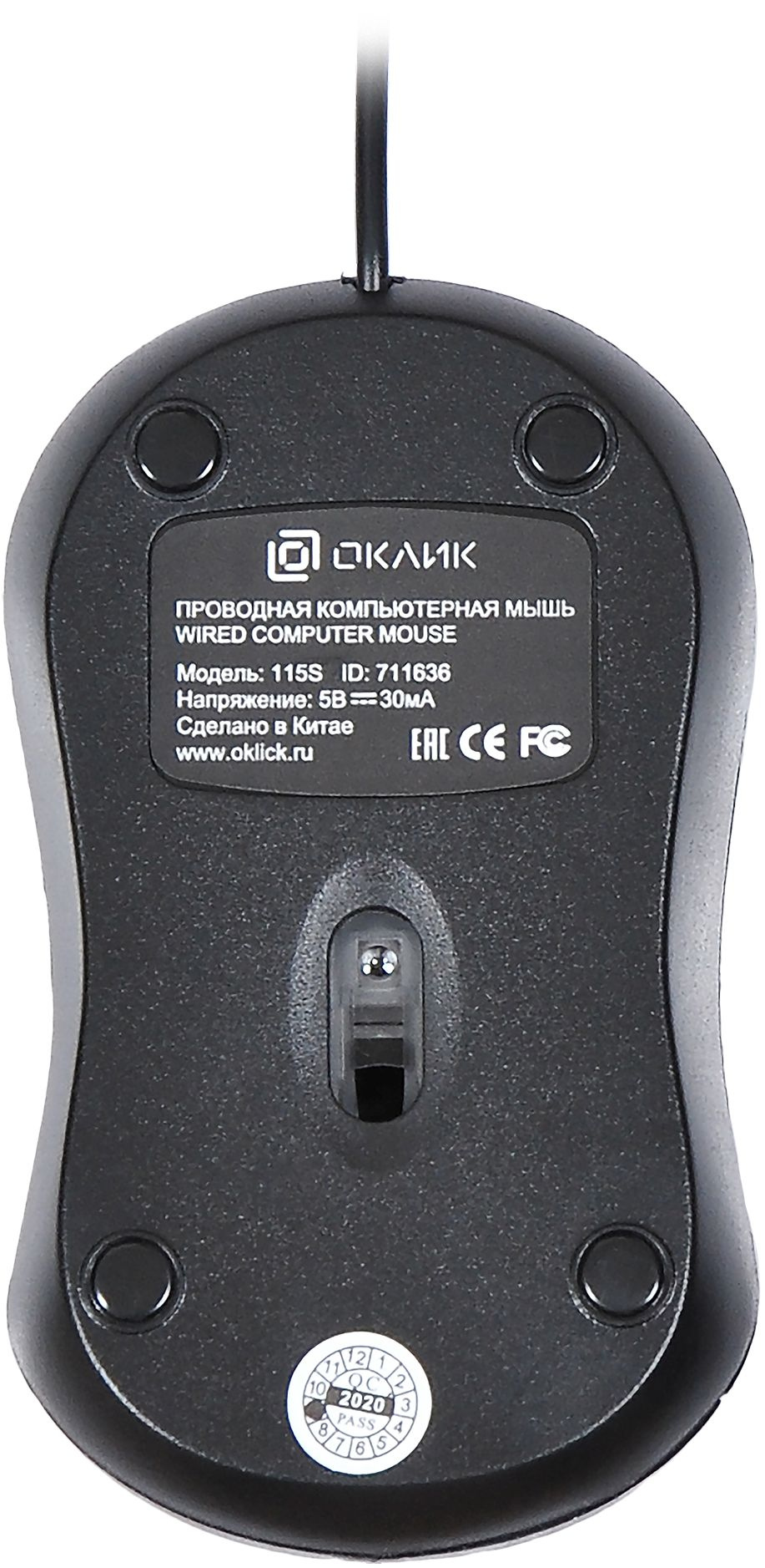 Мышь OKLICK - 115S, Проводная, USB, Optical, 3 btns, цвет чёрный, 711636