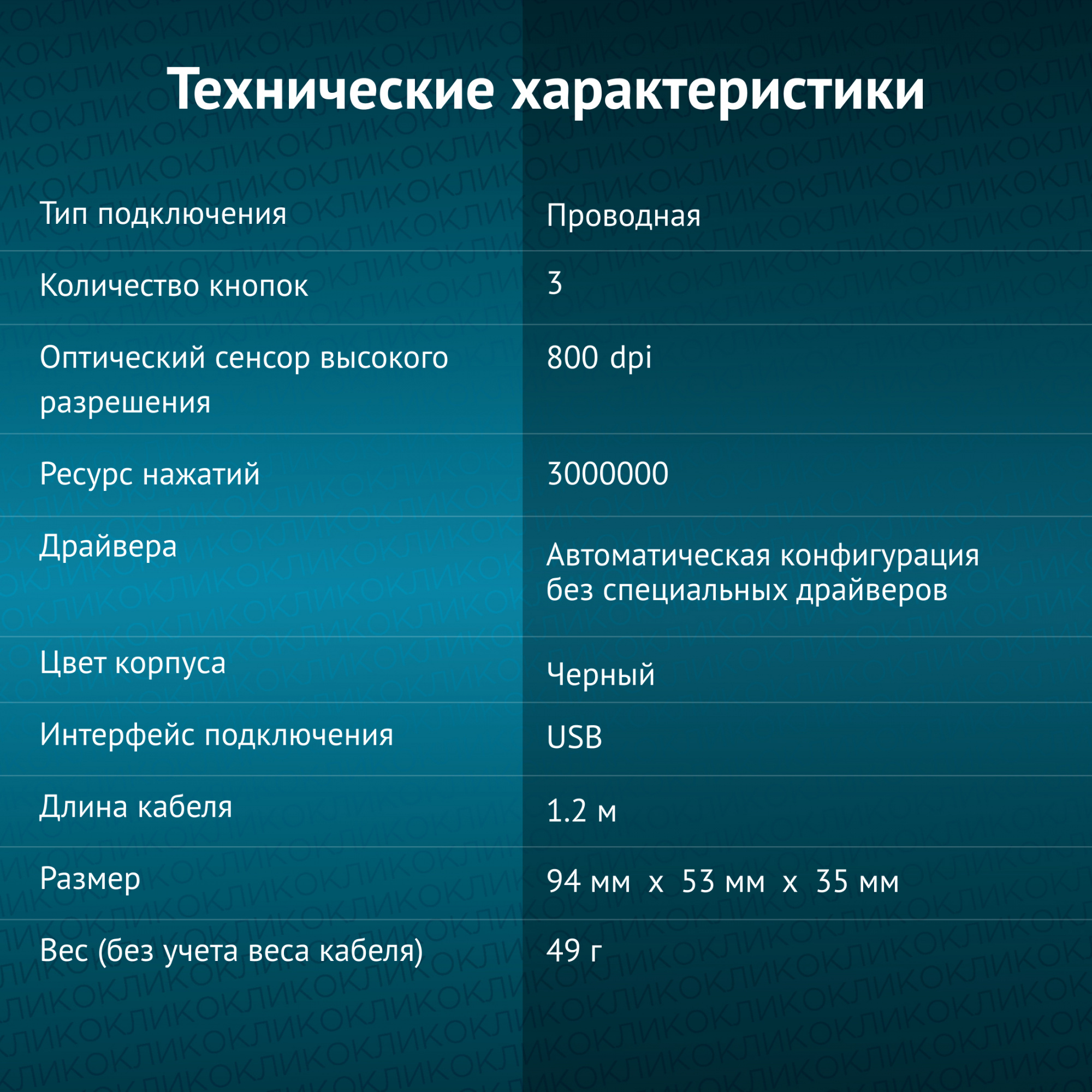 Эргономичная форма с упором для большого пальца. Провод прорезиненный, не путается. Сенсор с точностью 1600 DPI. Кнопки с тактильным откликом.