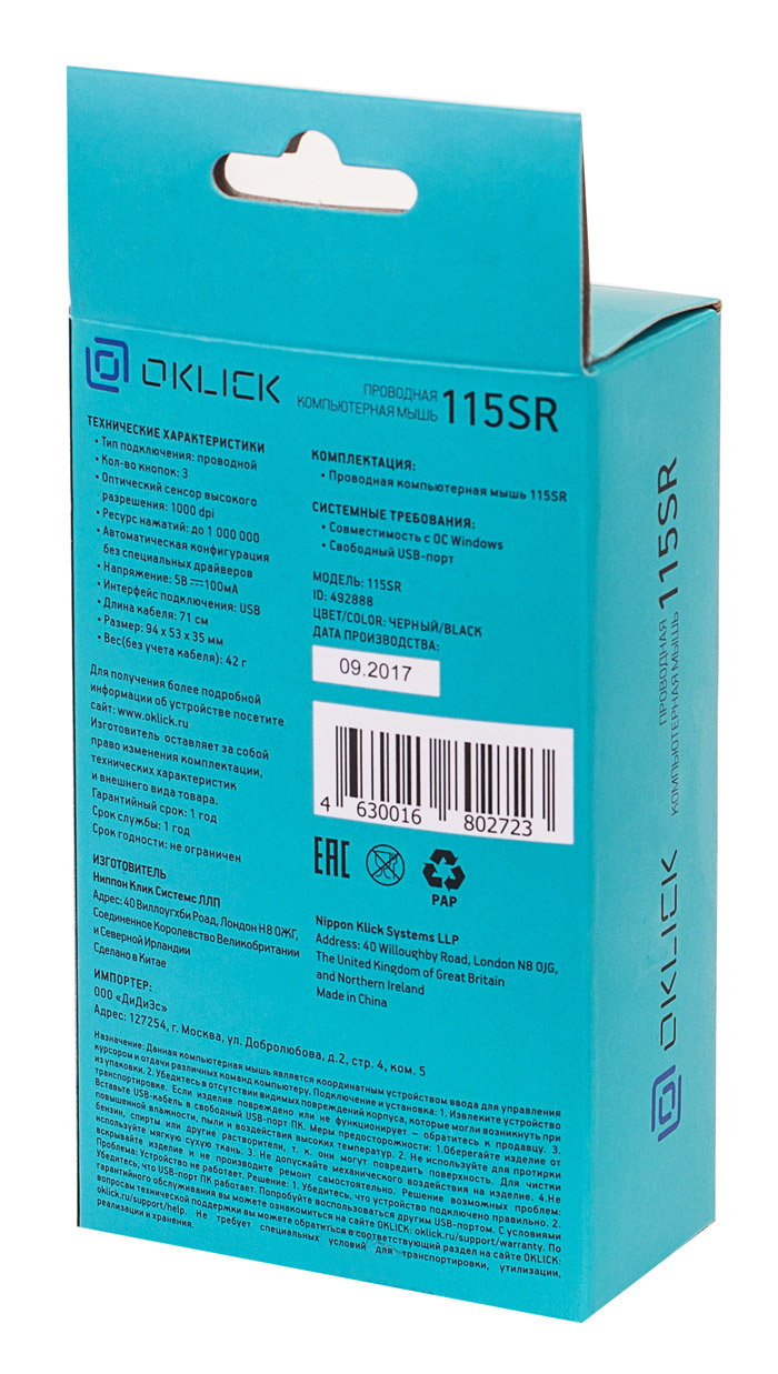 Выбрать товарыМышь OKLICK - 115SR, Проводная, USB, Optical, 3 btns, цвет чёрный, 492888