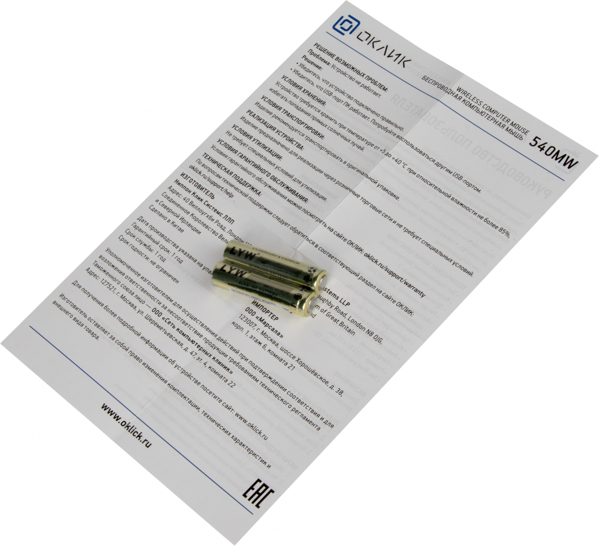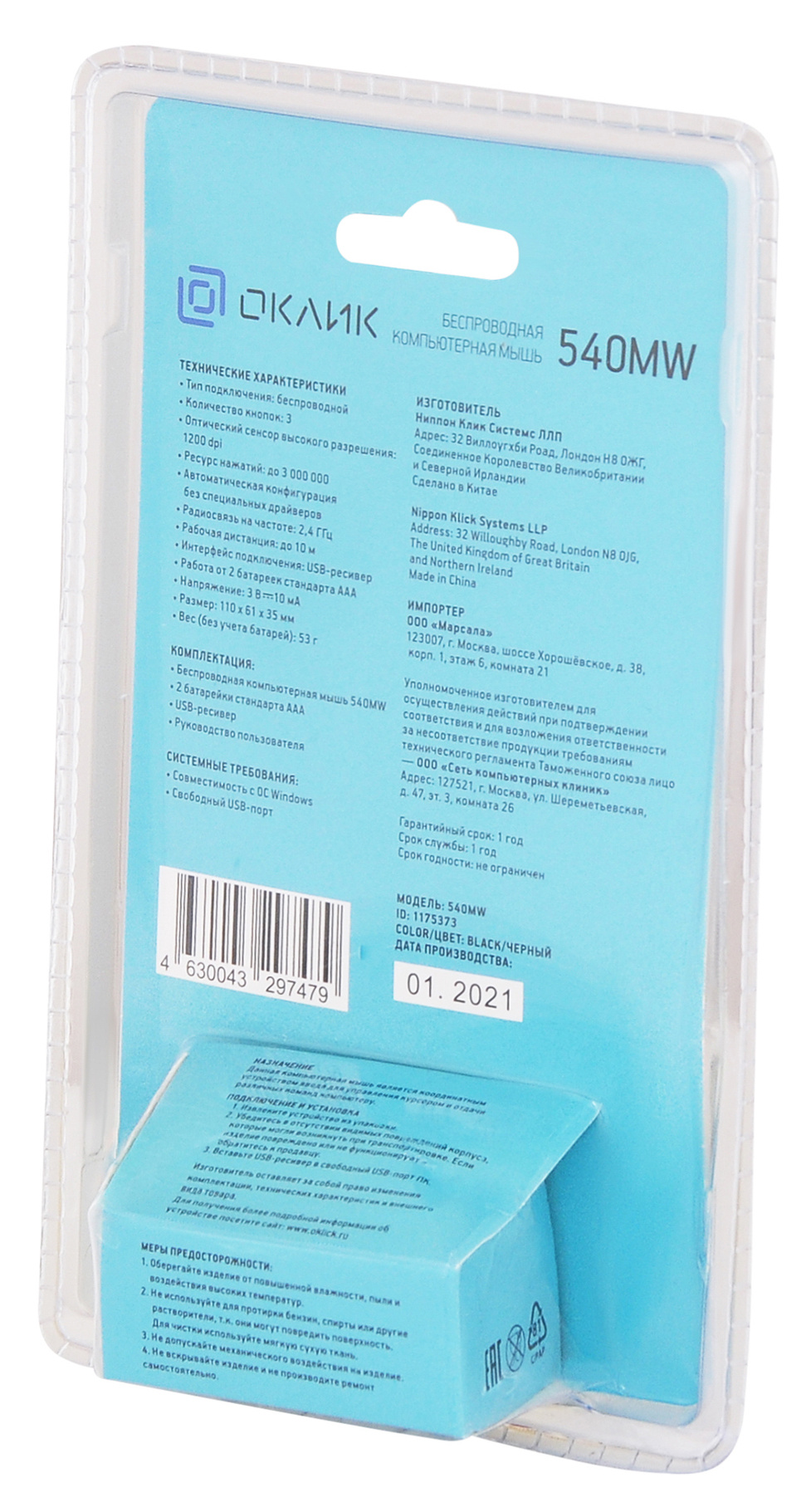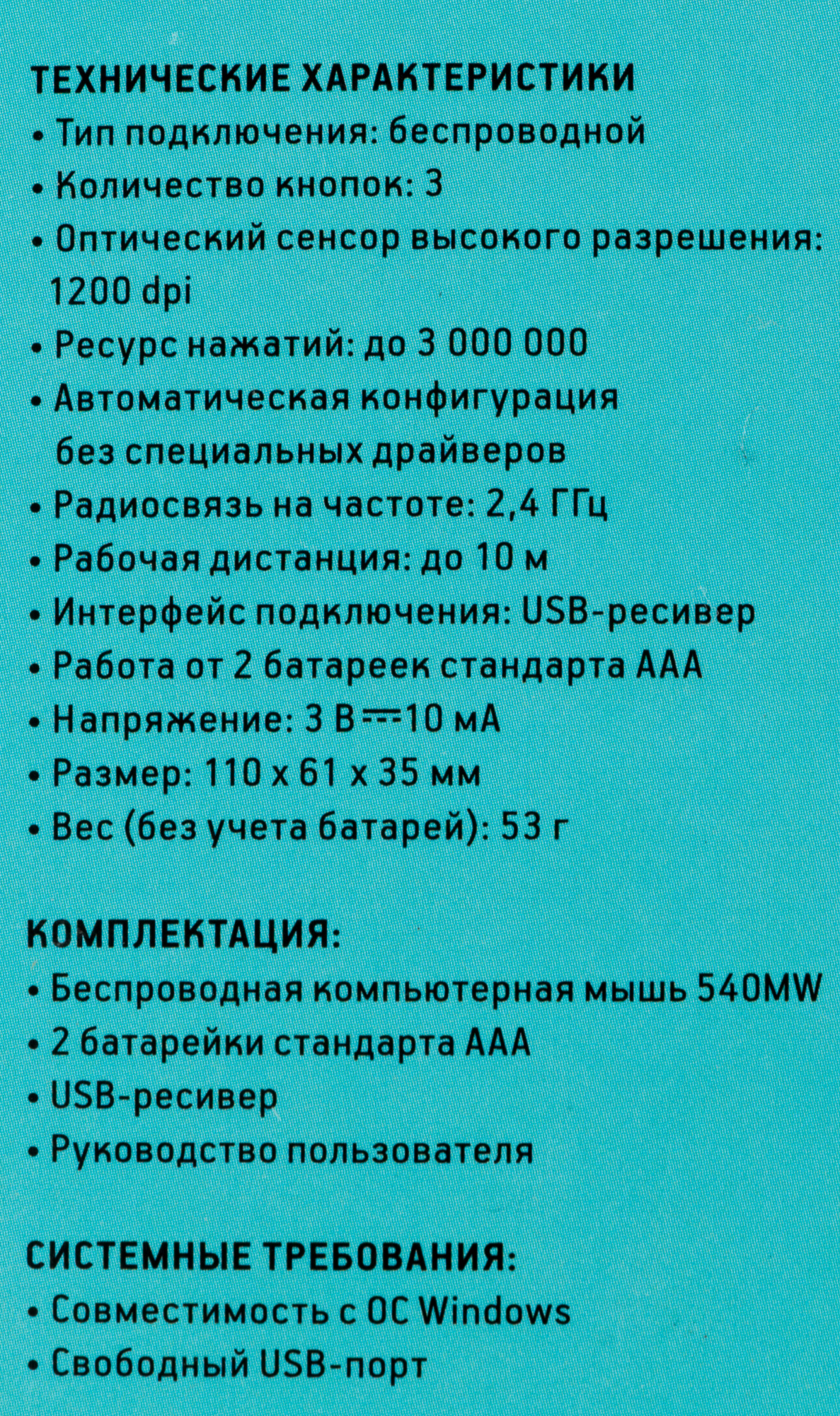 Мышь OKLICK - 540MW, Беспроводная, Optical, 1200 dpi, 3 btns, цвет чёрный, 1175373