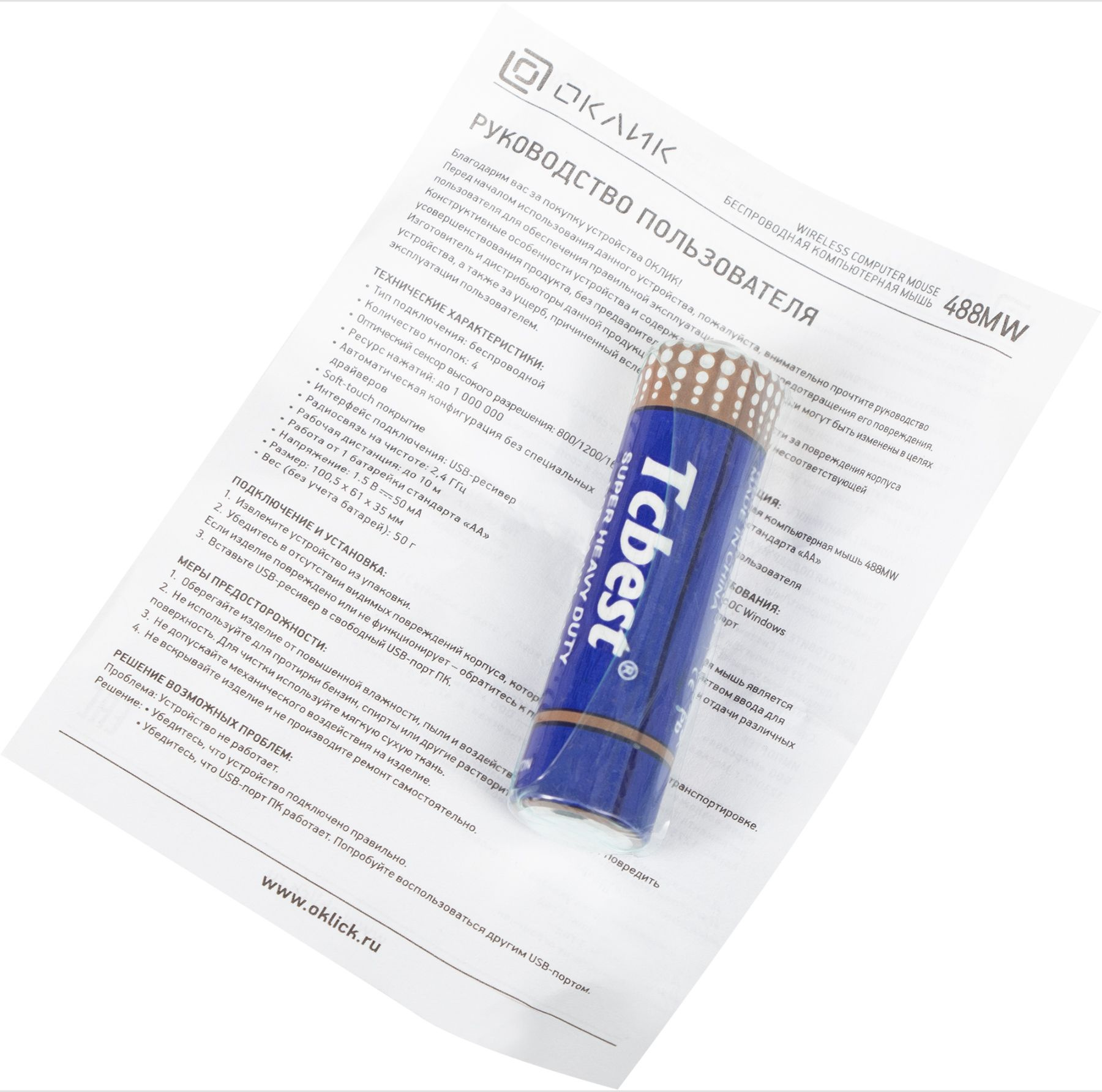 Мышь OKLICK - 488MW, Беспроводная, Optical, 1600 dpi, 4 btns, цвет серый, 1196571