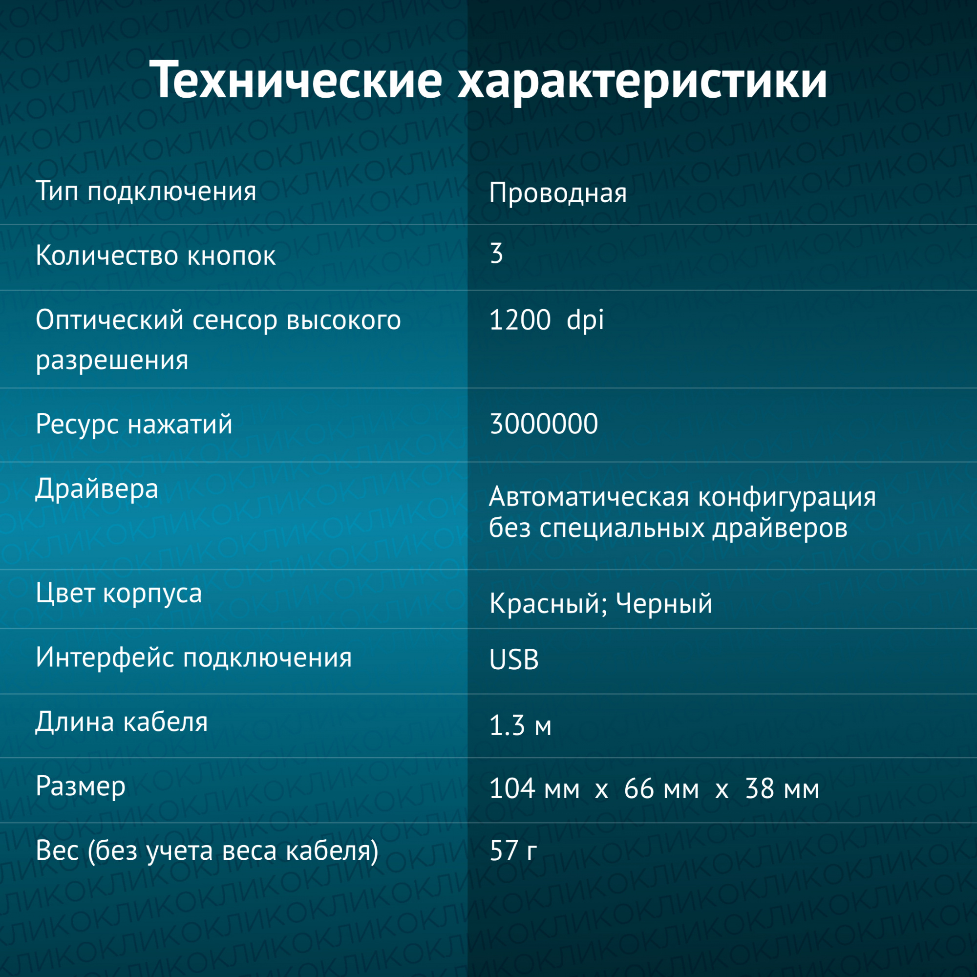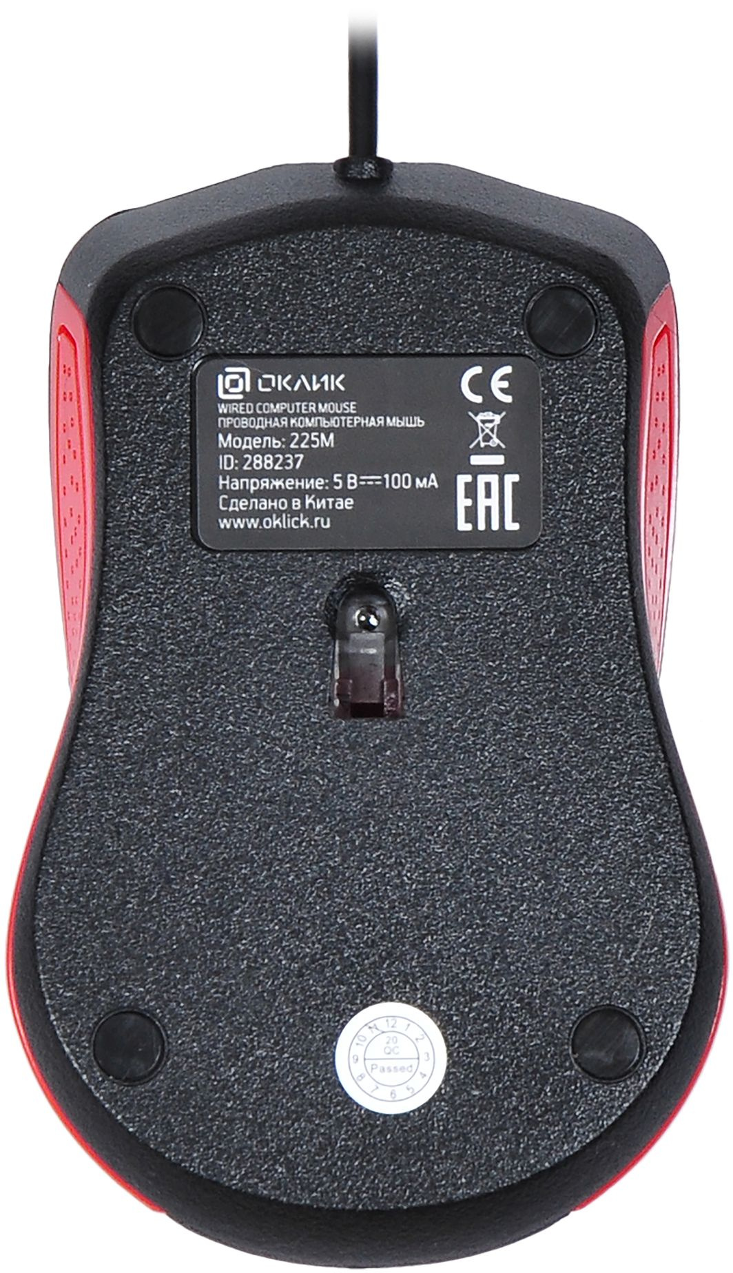 Мышь OKLICK - 225M, Проводная, USB, Optical, 3 btns, цвет чёрно-красный, 288237