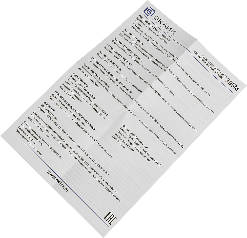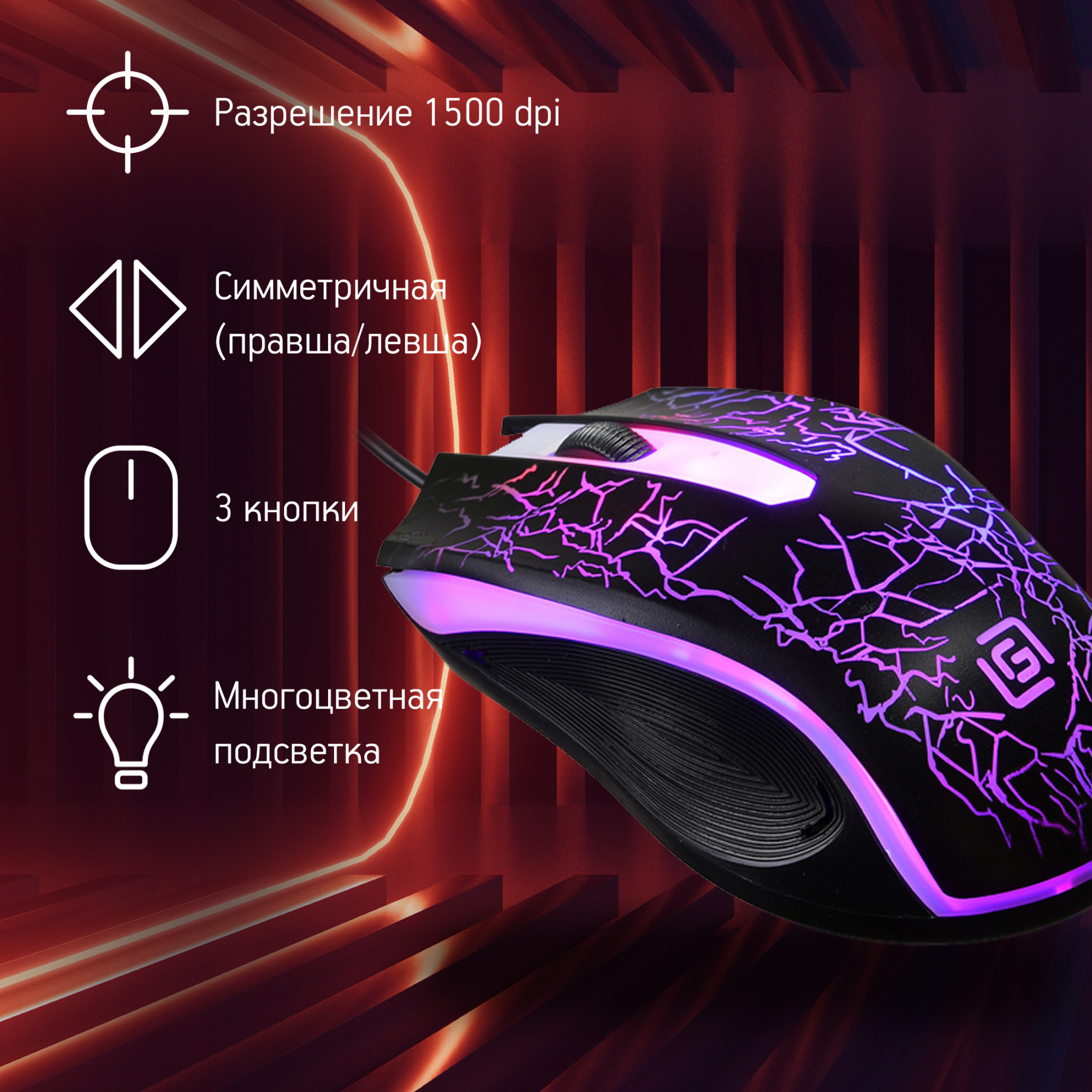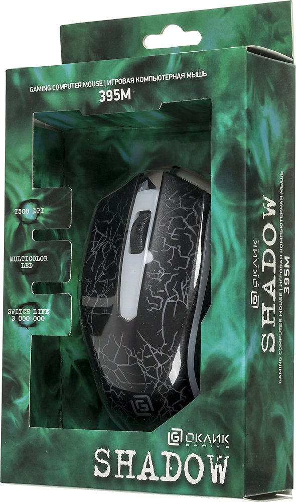 Мышь OKLICK - 395M SHADOW, Проводная, USB, Optical, 1500 - 1500 dpi, 3 btns, gaming, цвет чёрный, 1102286