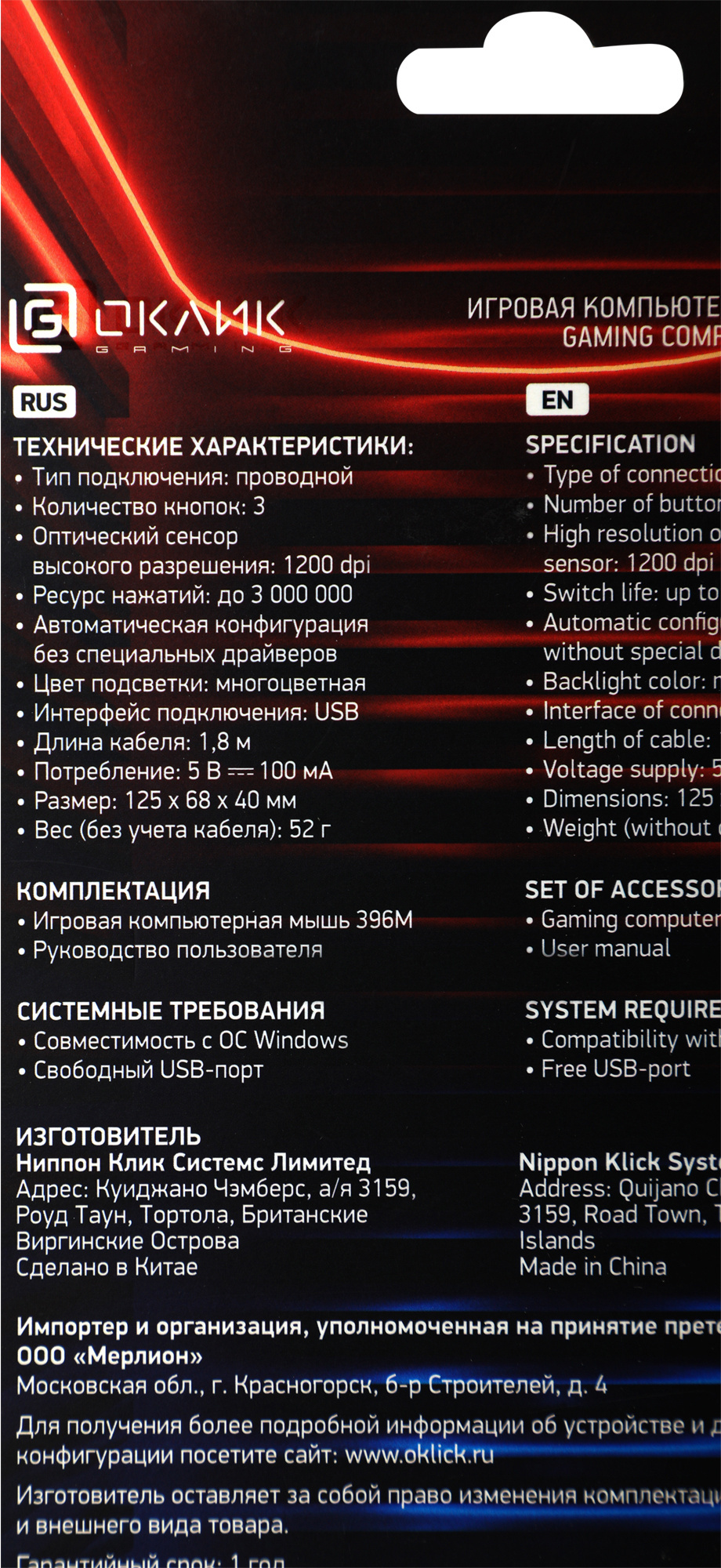 Выбрать товарыМышь OKLICK - 396M INSOMNIA, Проводная, USB, Optical, 1200 - 1200 dpi, 3 btns, gaming, цвет чёрный, 1192373