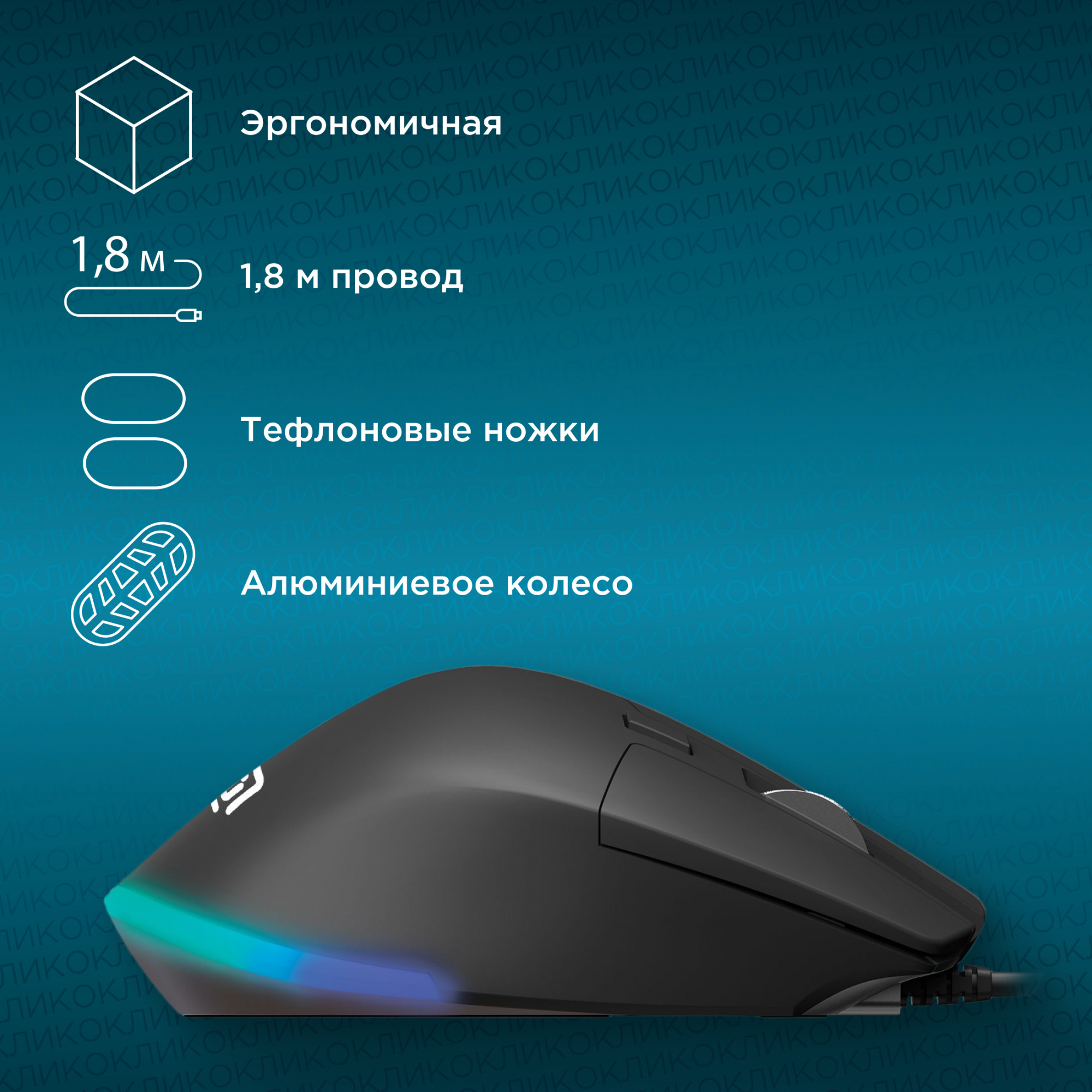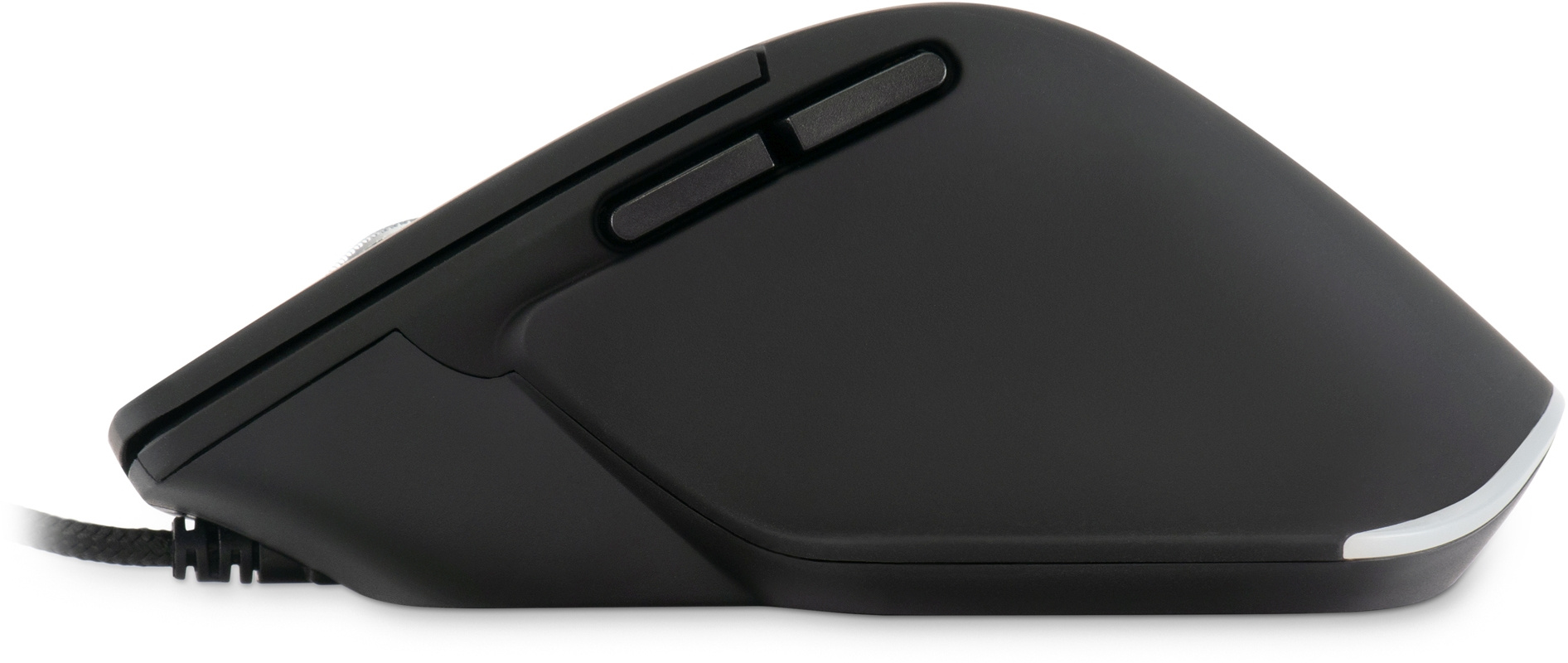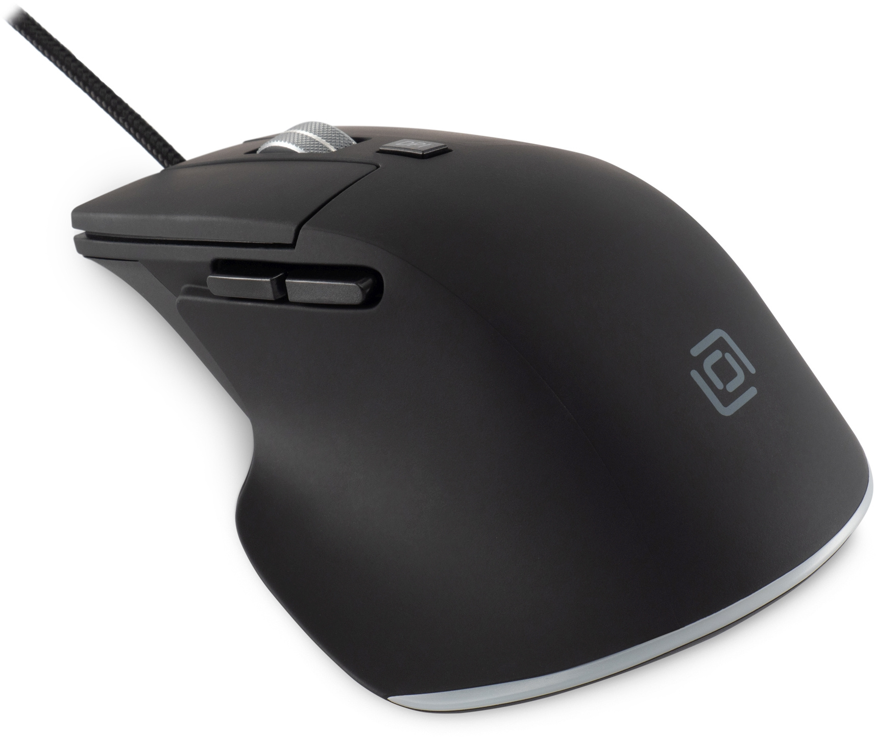 Проводной вариант средней величины, с эргономичной формой под ладонь. Подключение моментальное, клик кнопок упругий, без запаздывания. Колёсико прокрутки широкое, пальцем крутится без усилий. Оптический датчик работает стабильно на разных поверхностях.