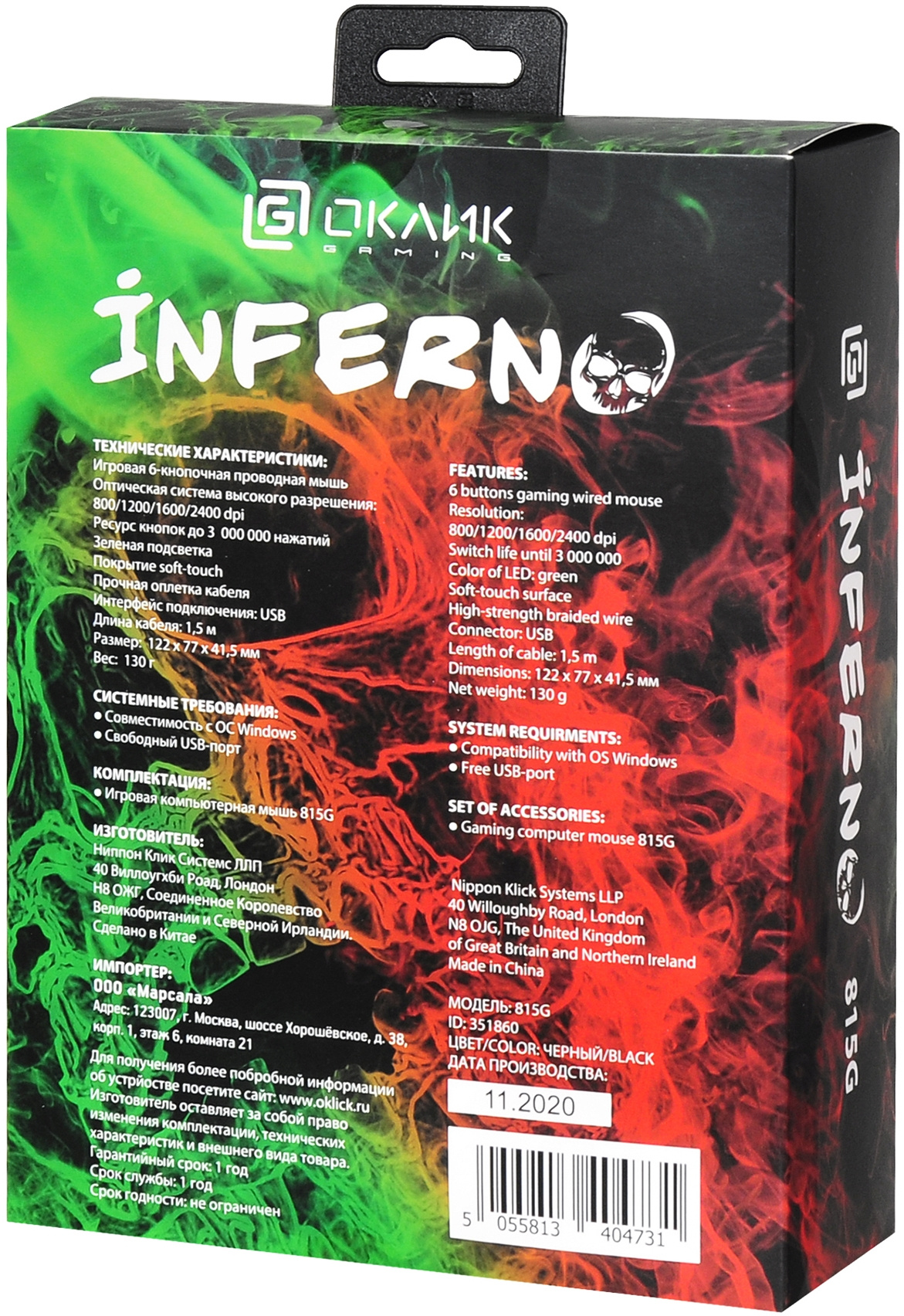 Мышь OKLICK - 815G INFERNO, Проводная, USB, Optical, 6 btns, gaming, цвет чёрный, 351860