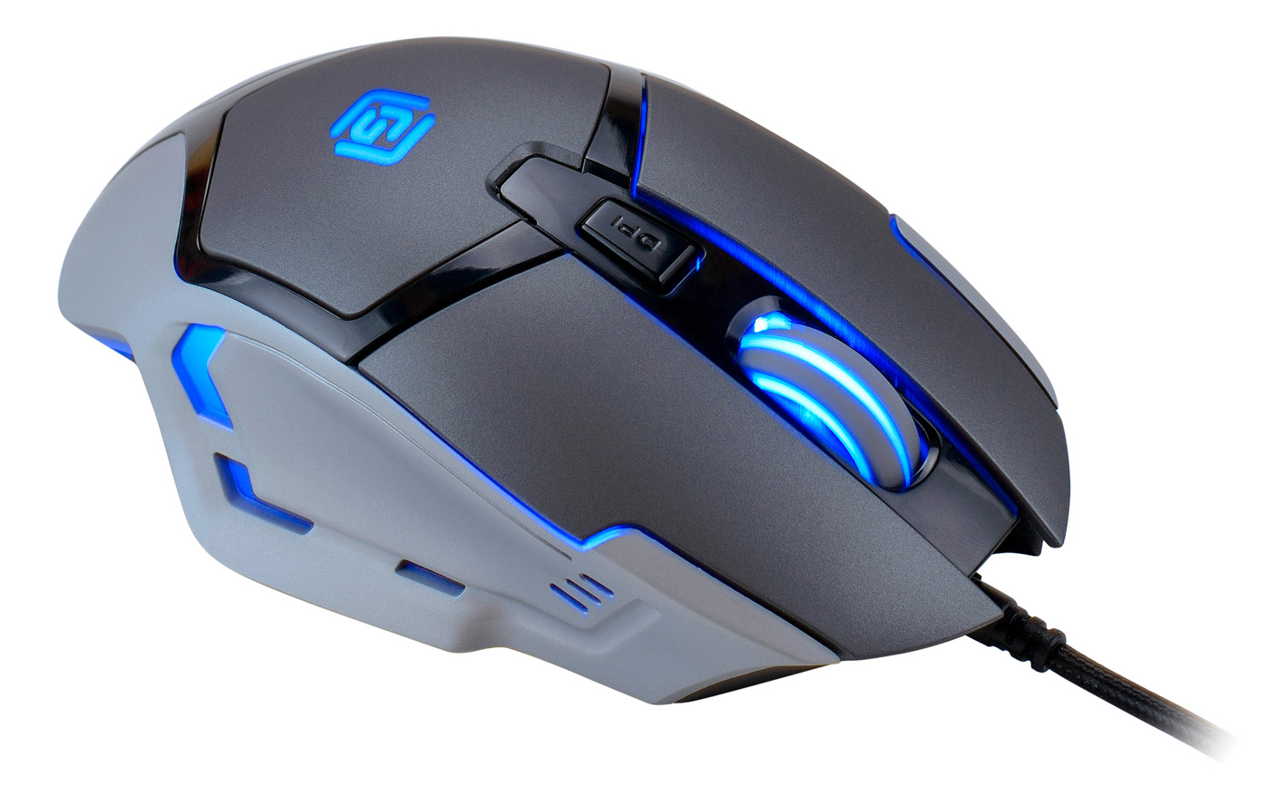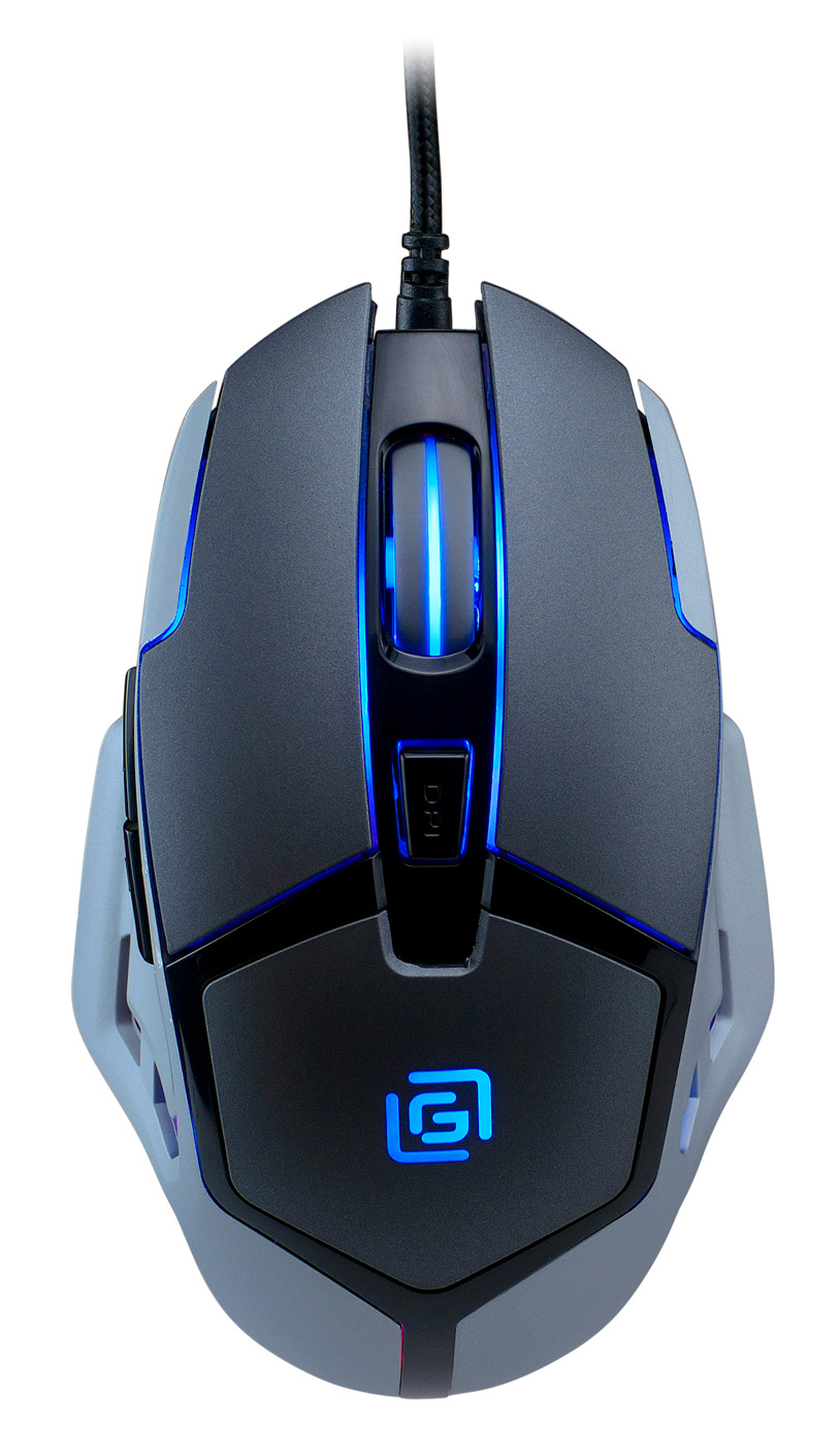 Серый корпус с резиновыми вставками. Провод в оплетке. Сенсор 1600 DPI. Колесико прокрутки с тактильным откликом.