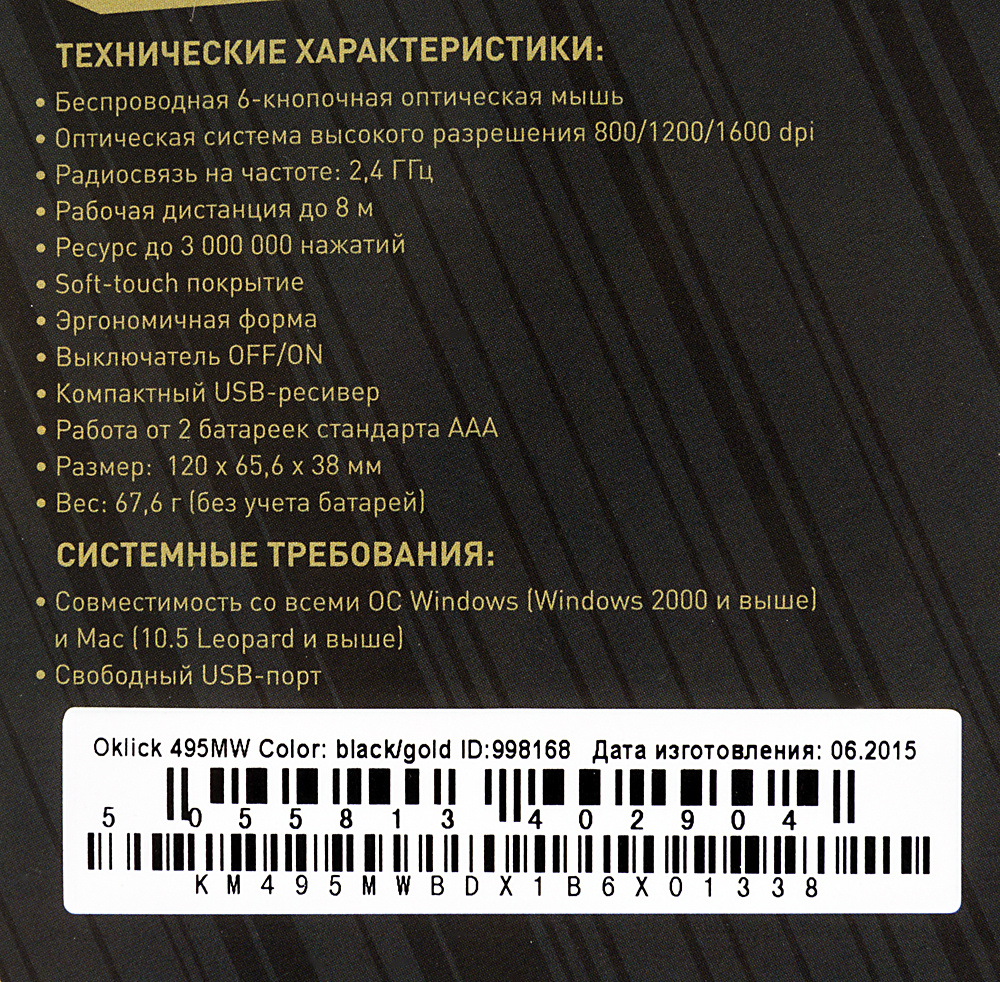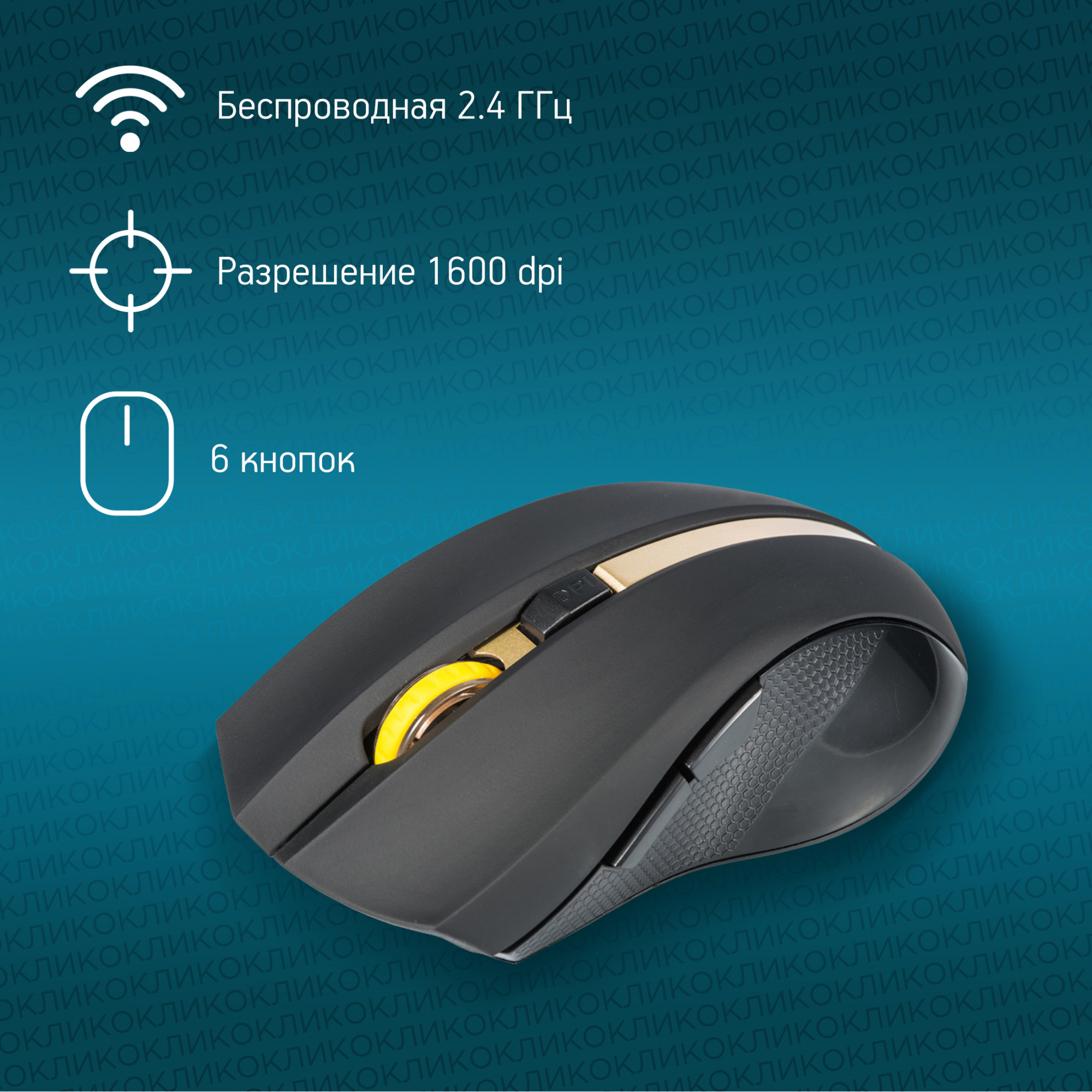 Мышь OKLICK - 495MW, Беспроводная, Optical, 1600 dpi, 6 btns, цвет чёрный, 998168