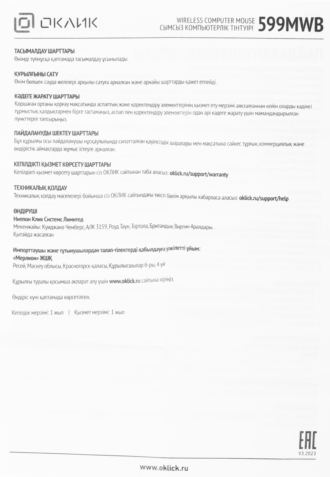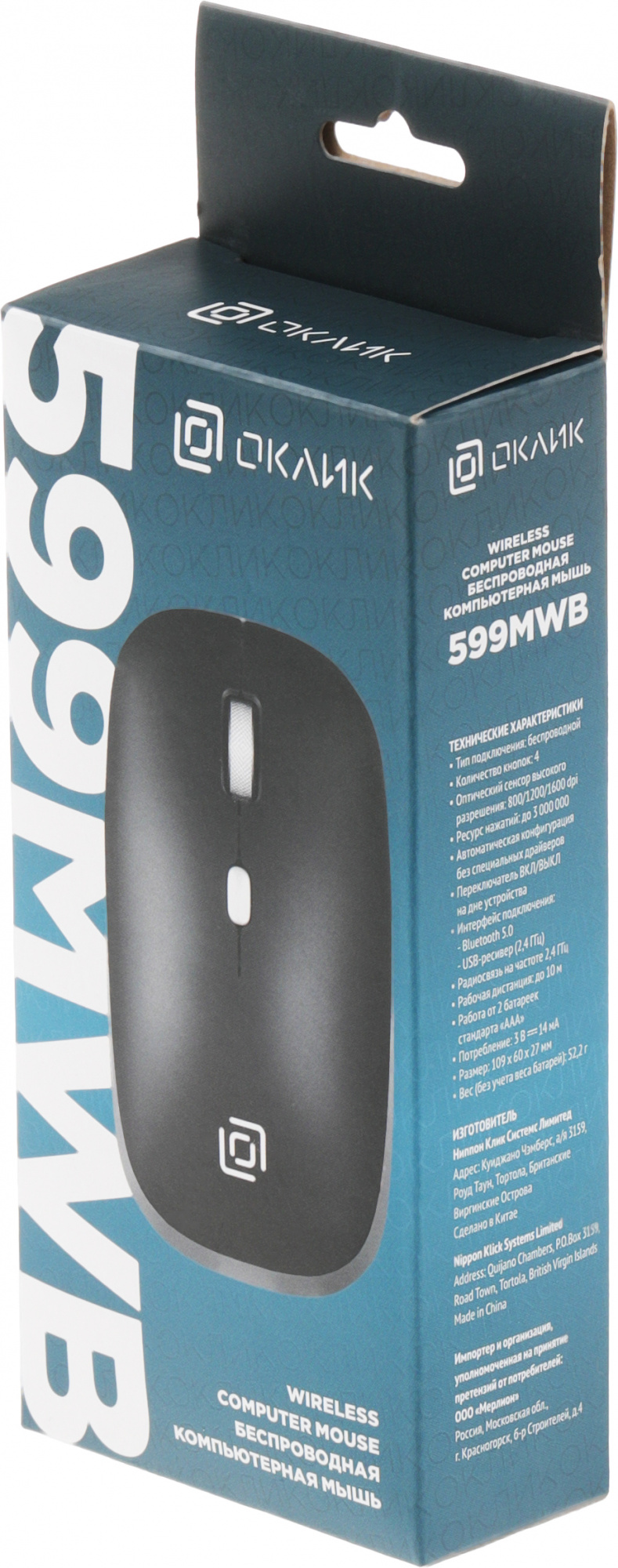 Мышь OKLICK - 599MWB, Беспроводная, Optical, 4 btns, цвет чёрный, 1520854
