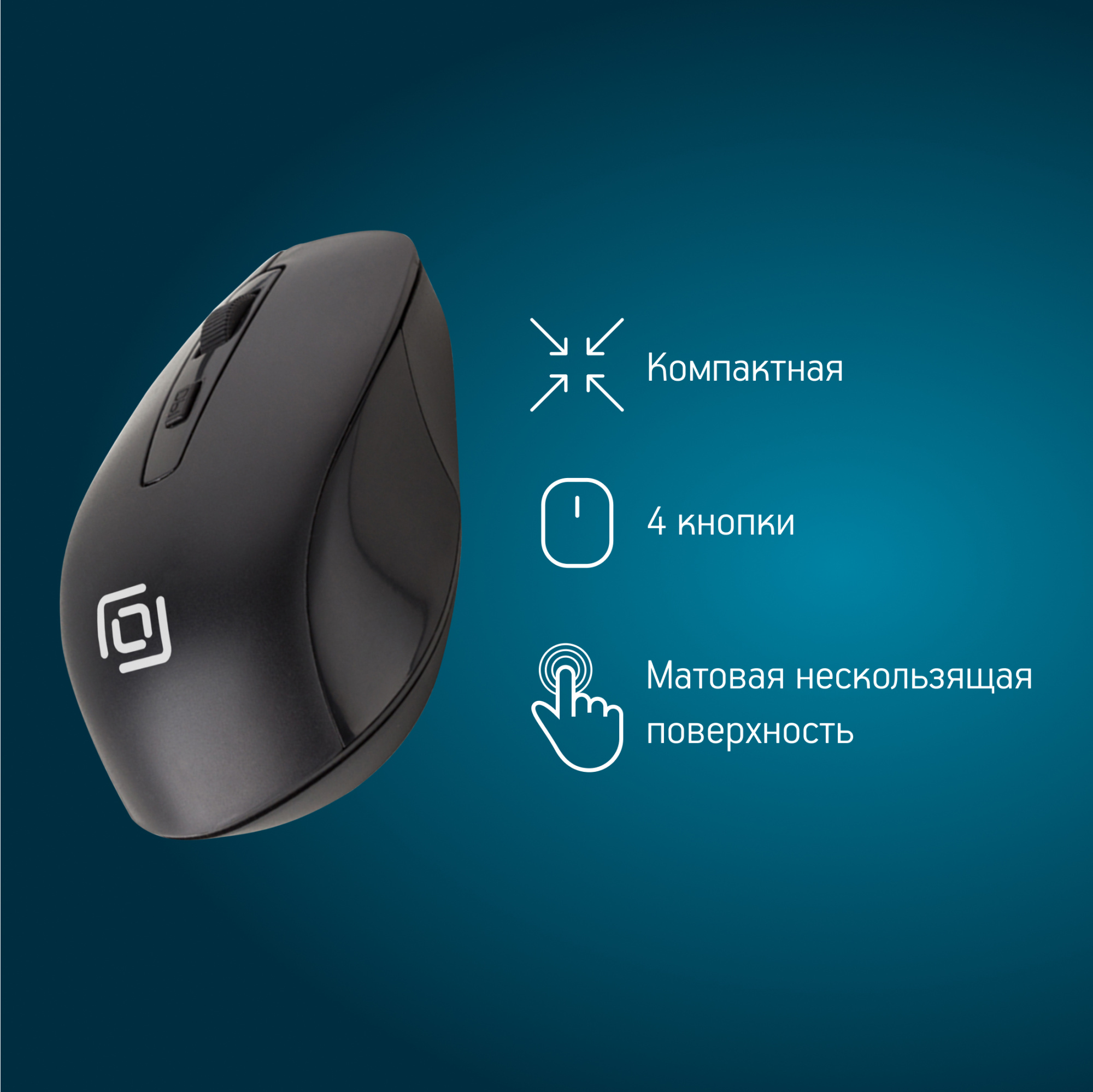 Беспроводная мышь Oklick с эргономичной формой и софт-тач покрытием удобно лежит в руке: оптический сенсор 1600 DPI точен для офиса и дома. Работает до 9 месяцев от одной батарейки.