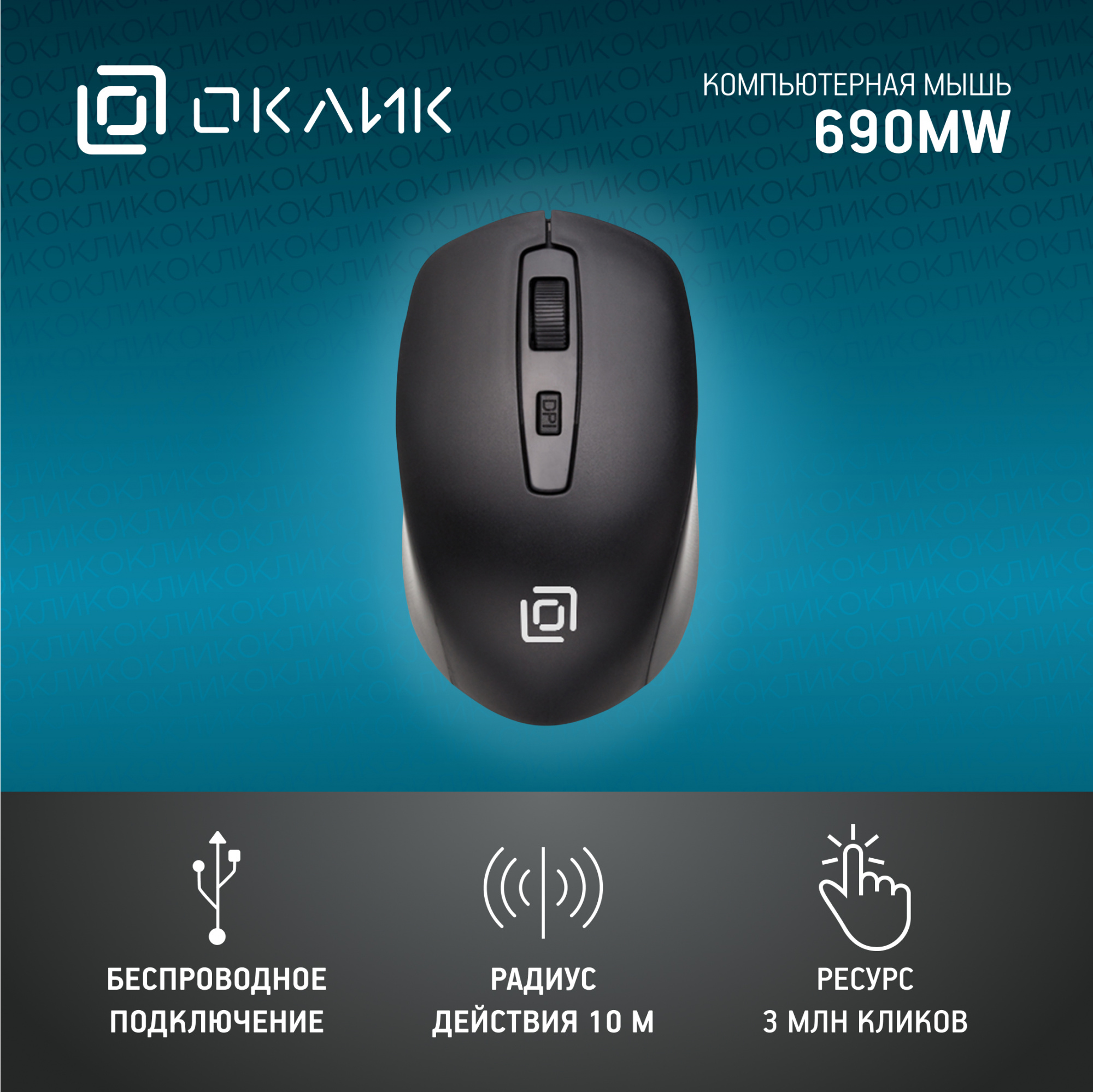 Мышь OKLICK - 690MW, Беспроводная, Optical, 4 btns, цвет чёрный, 1520884