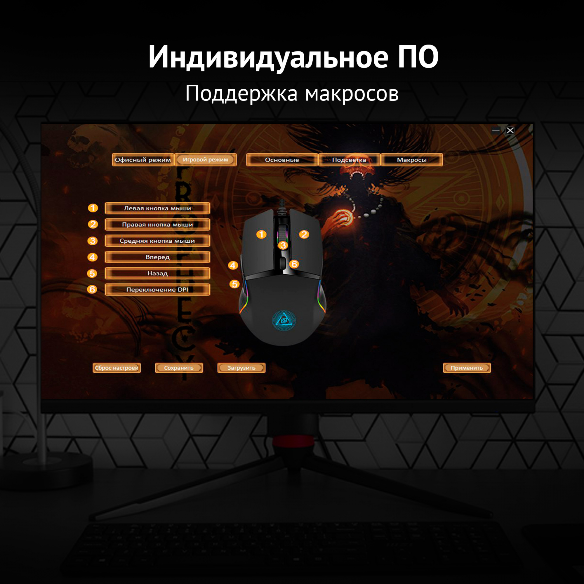 Мышь OKLICK - 717G PROPHECY, Проводная, USB, Optical, 6 btns, цвет чёрный, 1465495