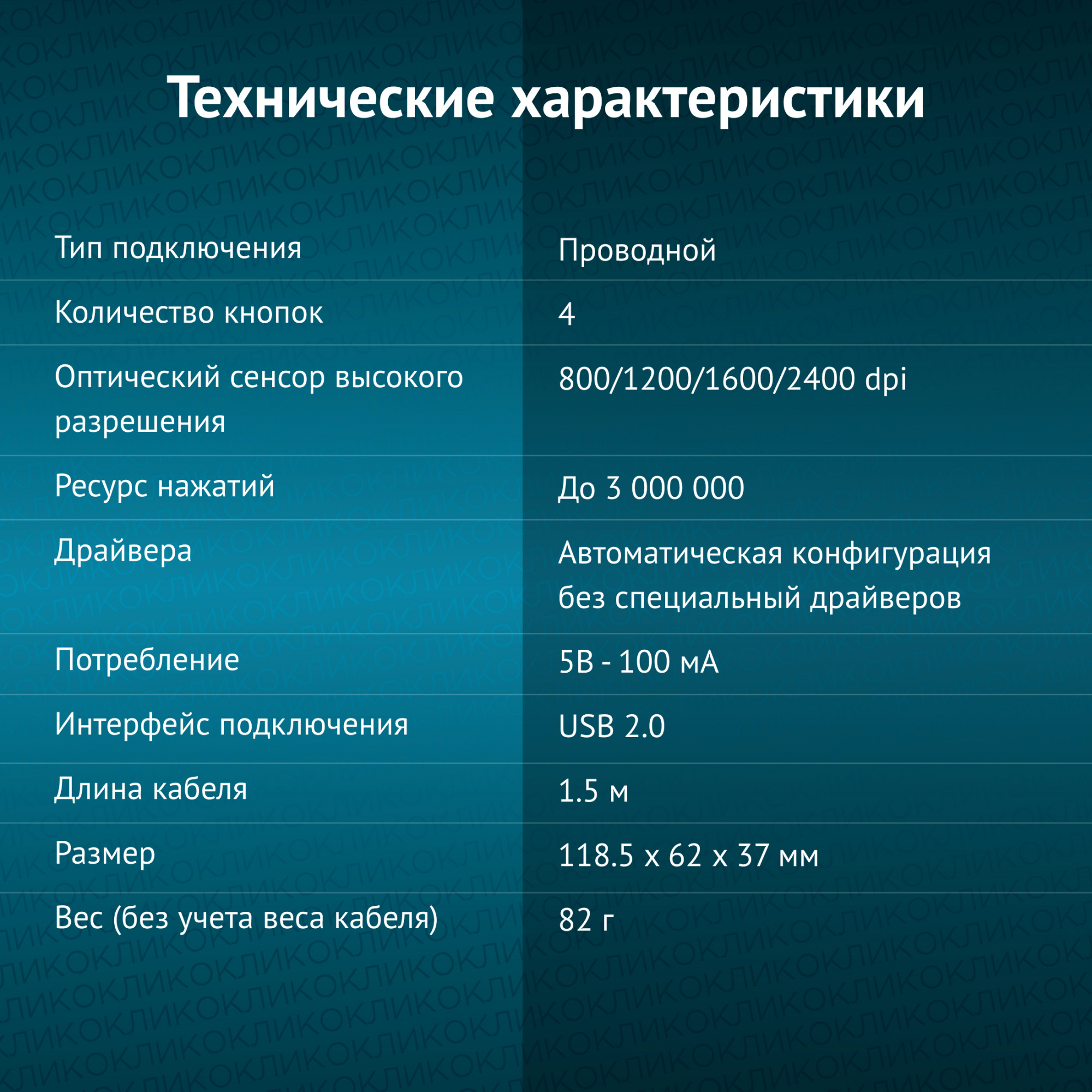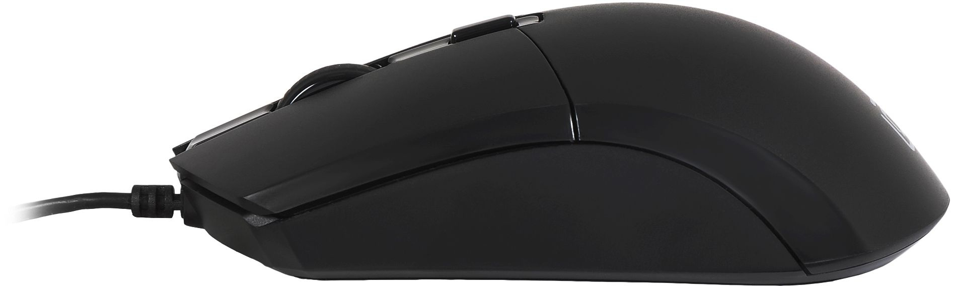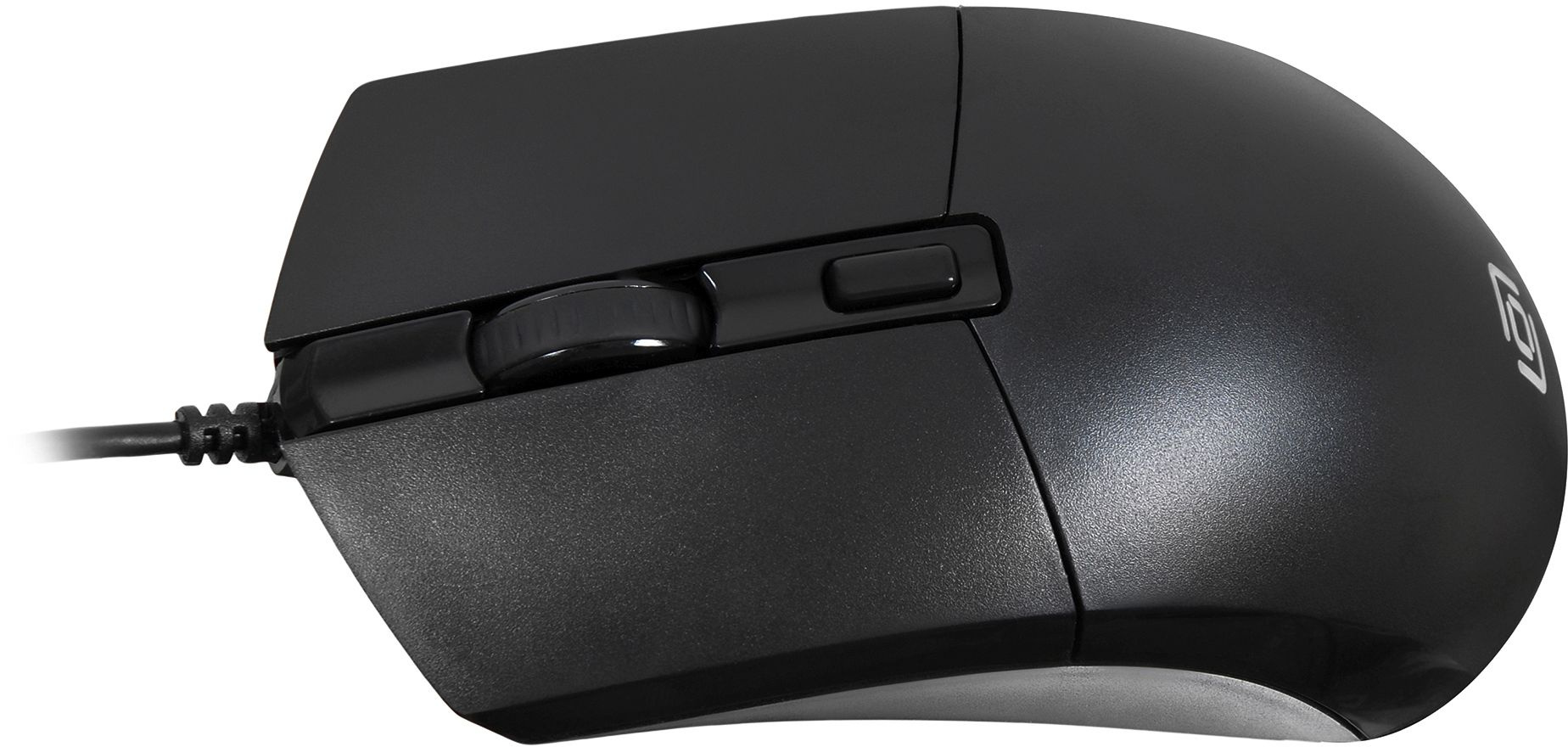 Черный корпус с резиновыми вставками. Провод в оплетке. Сенсор 1600 DPI. Колесико прокрутки без люфтов.