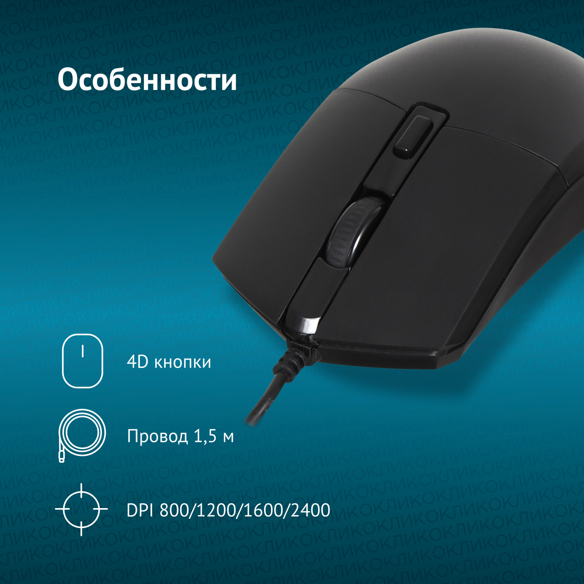 Мышь OKLICK - 207M, Проводная, USB, Optical, 4 btns, цвет чёрный, 1474598