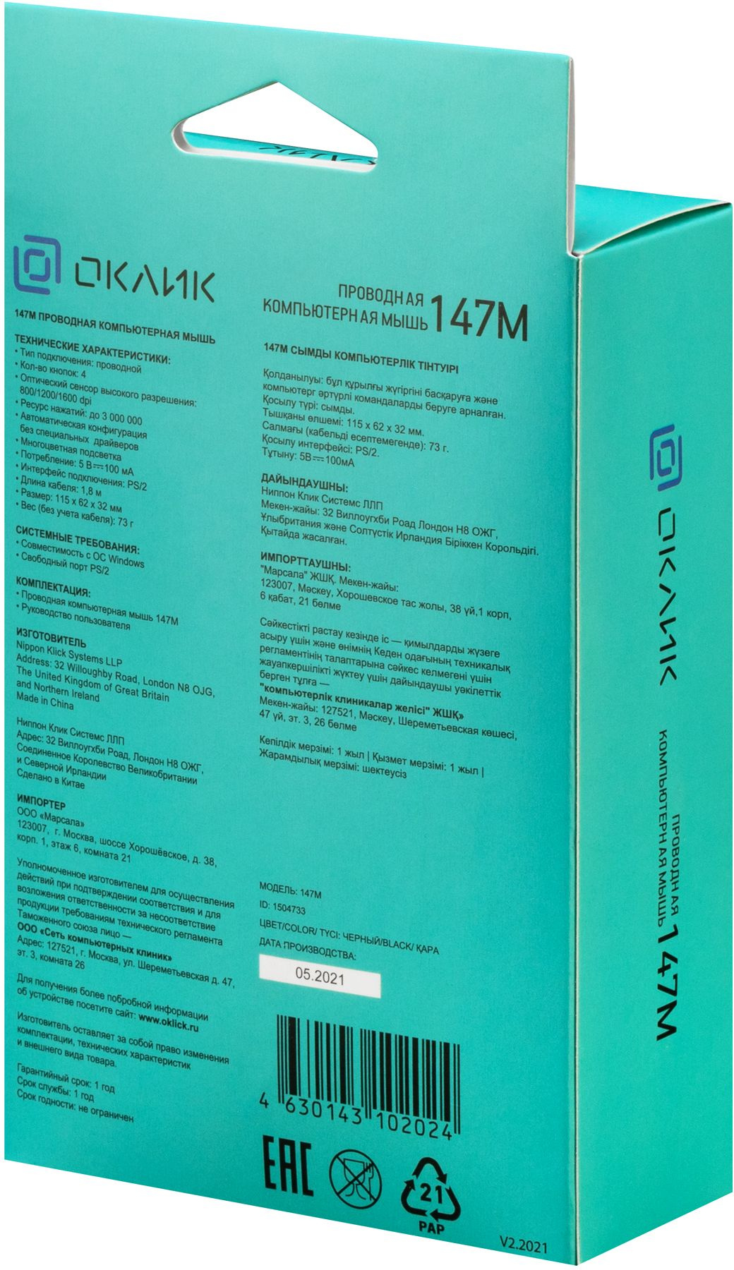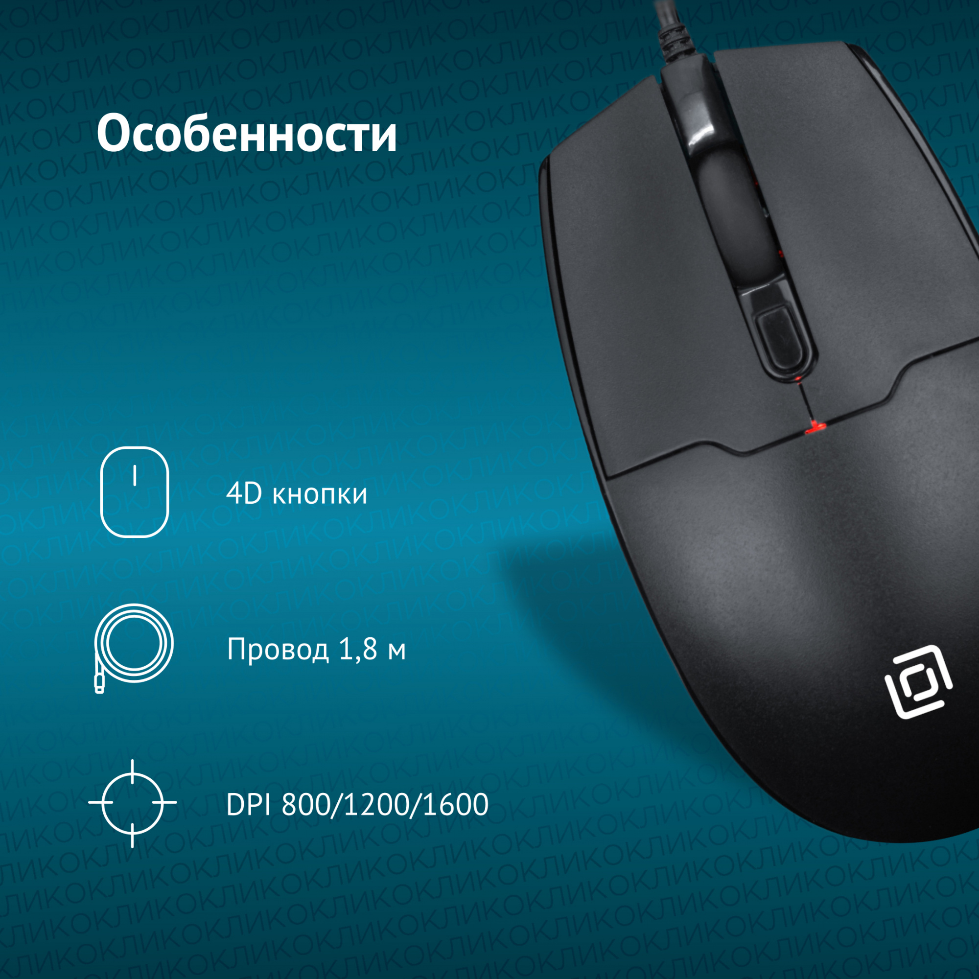 Мышь OKLICK - 147M, Проводная, Optical, 4 btns, цвет чёрный, 1504733