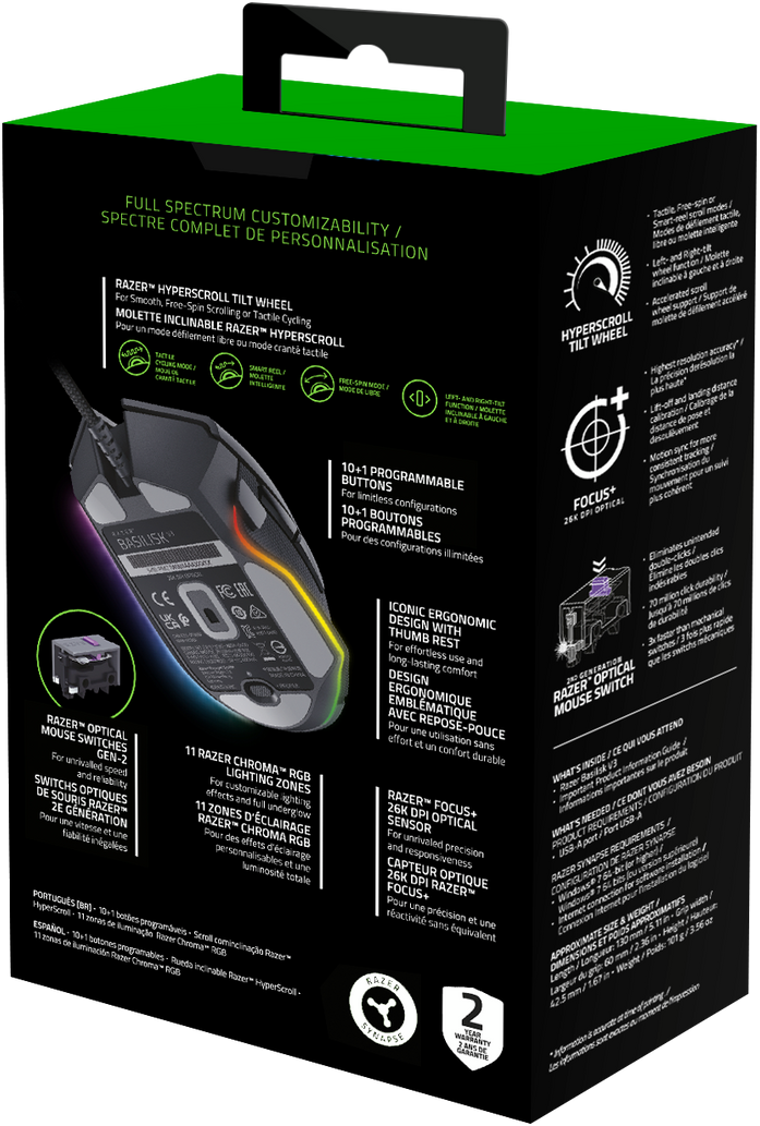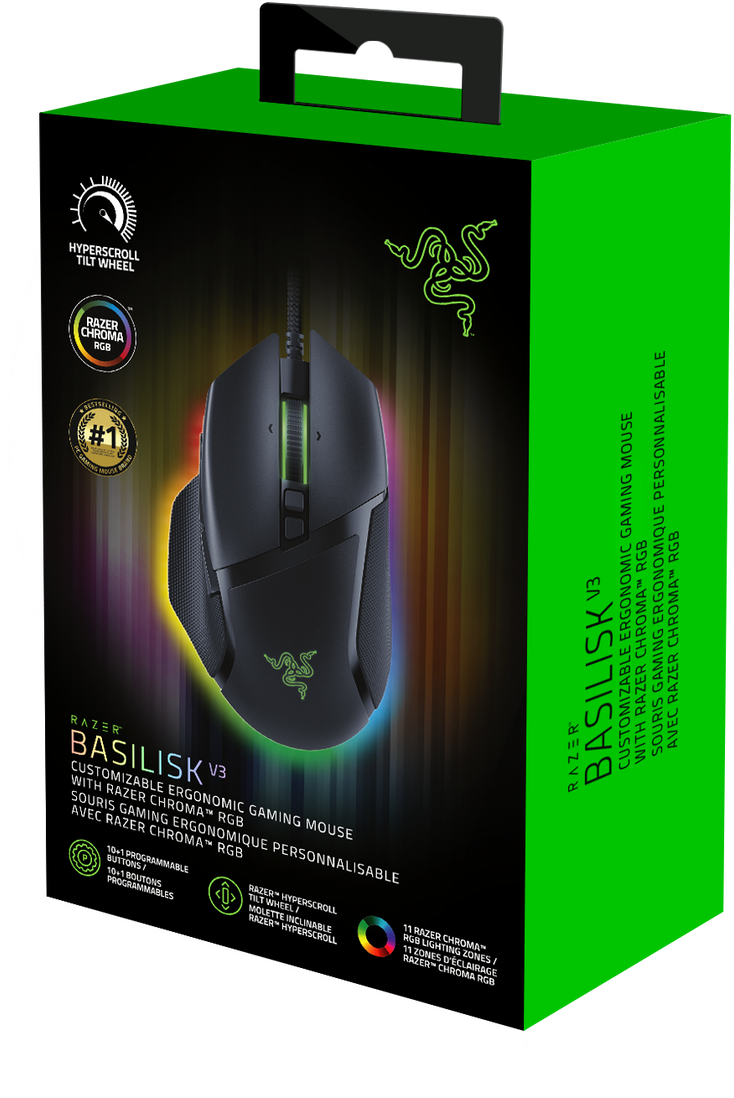 Мышь Razer - Basilisk V3, Проводная, USB, Optical, 11 btns, gaming, цвет чёрный, RZ01-04000100-R3M1