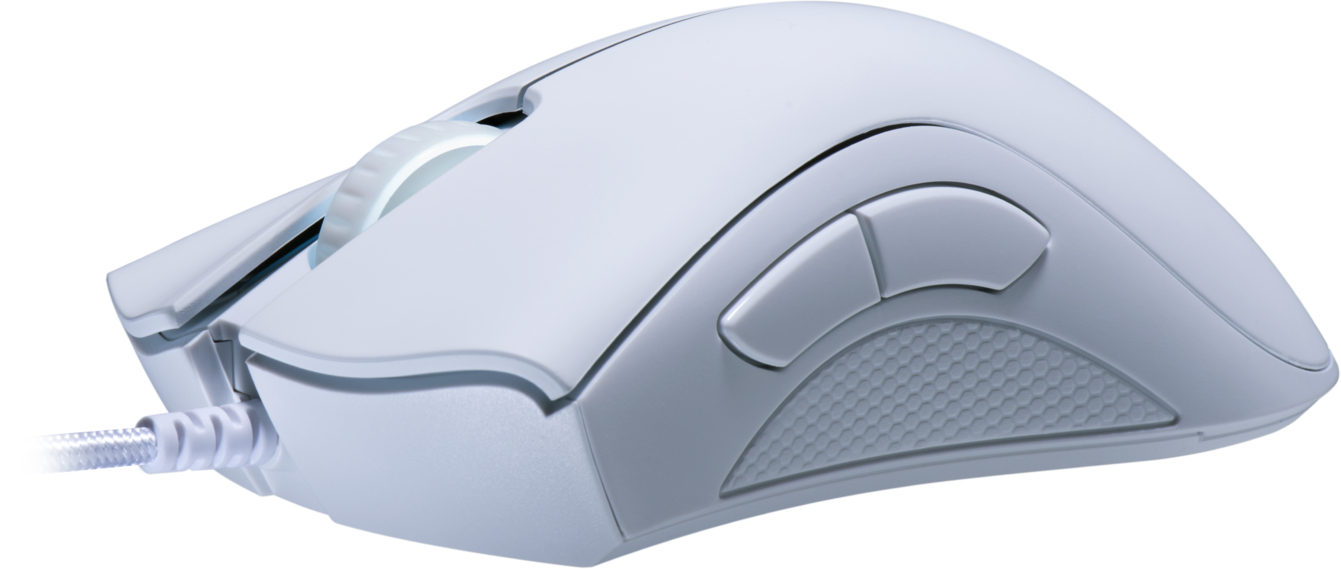 Знаковая форма серии DeathAdder теперь в белом исполнении, выглядит свежо и элегантно. Проводное подключение даёт полную точность, сенсор на высоте — курсор двигается чётко и плавно. Кнопки отзывчивы, колесо прокрутки прорезиненное.