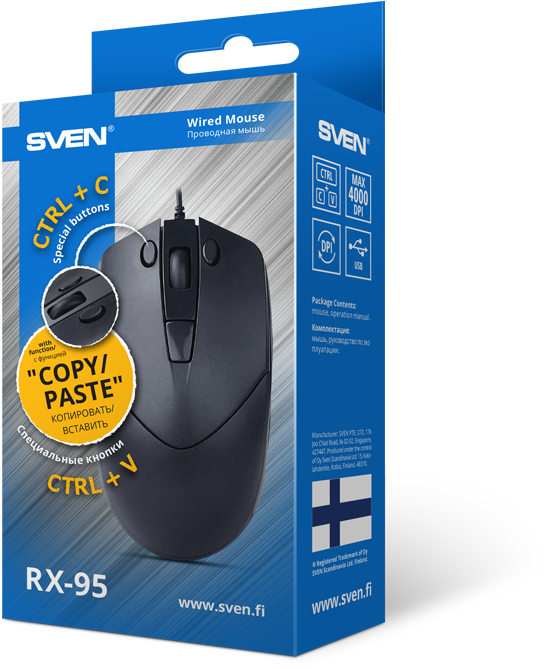 Мышь Sven - RX-95, Проводная, USB, Optical, цвет чёрный, SV-020323