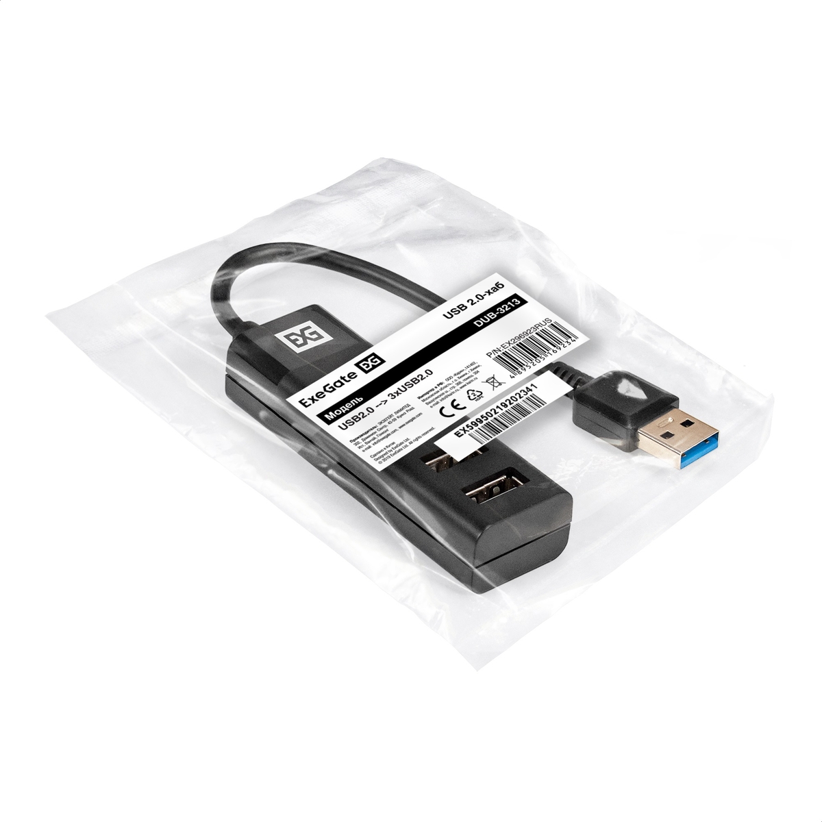 USB-хаб Exegate - DUB-3213, USB Type A, 3-USB2.0 Type A, 1-USB3.0 Type A, цвет чёрный, EX296923RUS