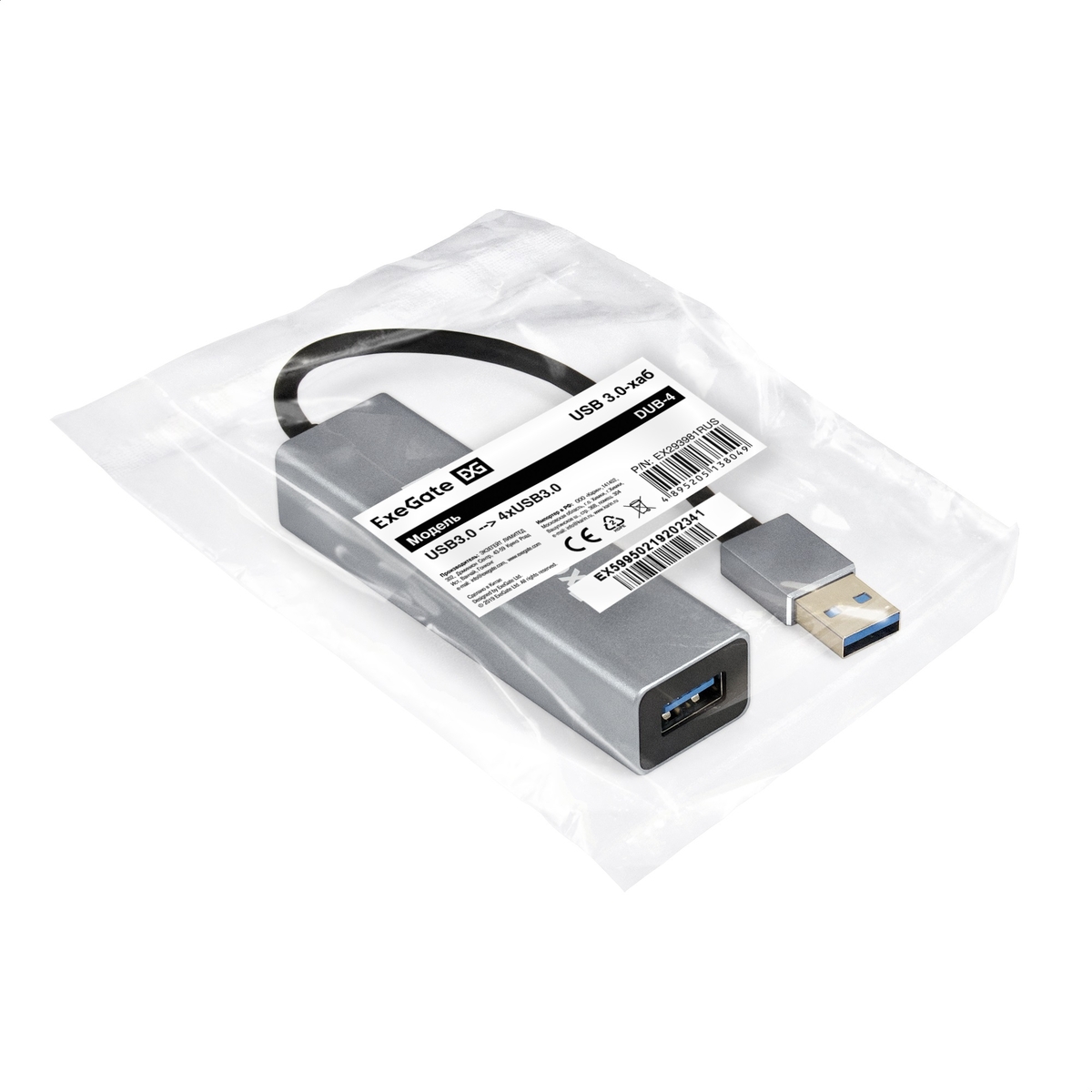 USB-хаб Exegate - DUB-4, USB Type A, 4-USB3.0 Type A, цвет серый, EX293981RUS