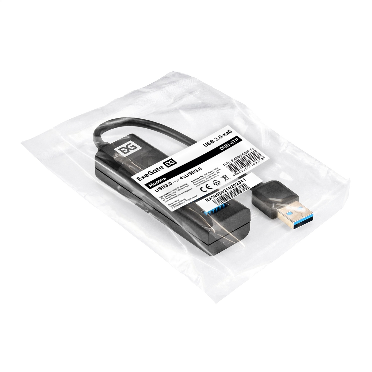 USB-хаб Exegate - DUB-4TP, USB Type A, 4-USB3.0 Type A, цвет чёрный, EX296925RUS