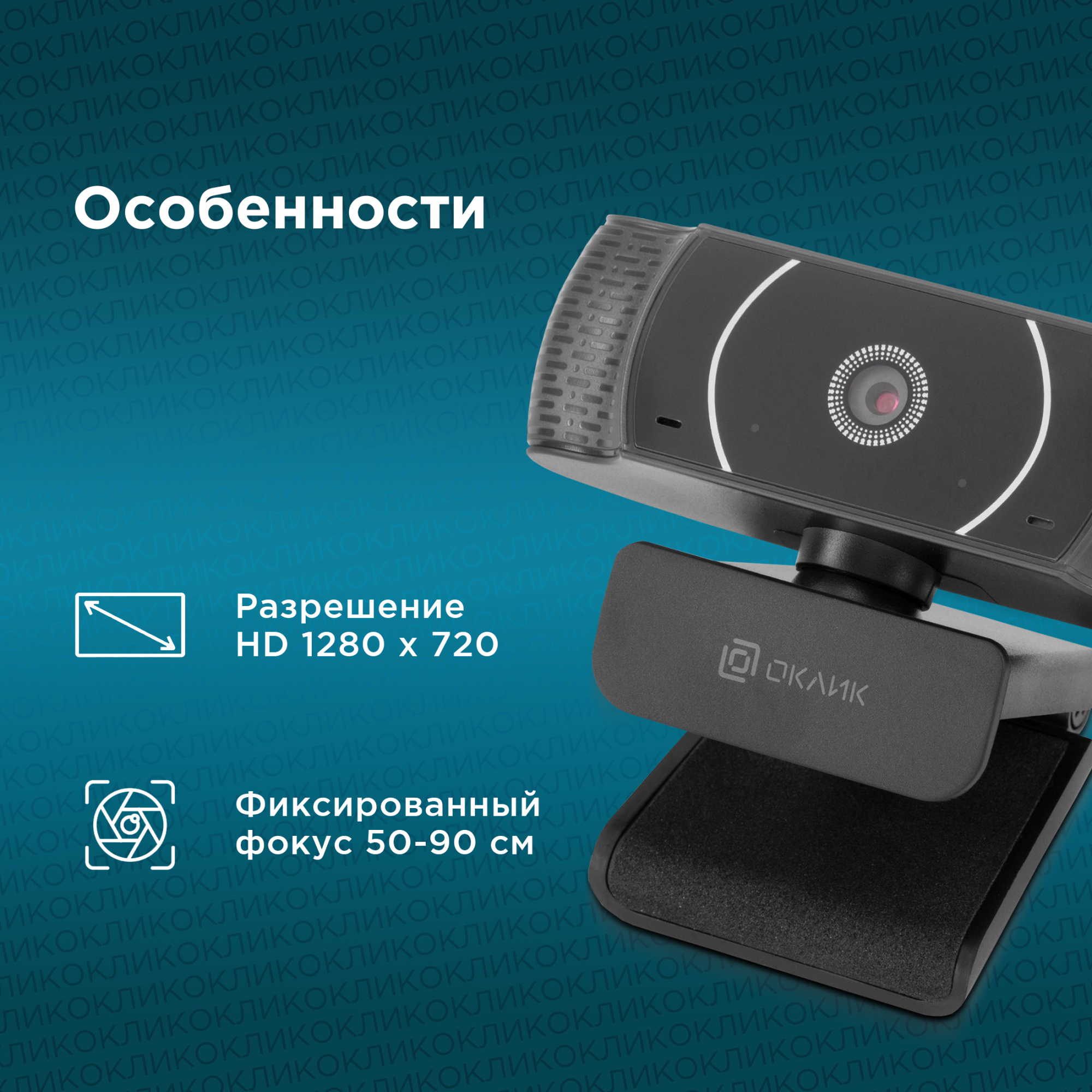 Web-камера OKLICK - C016HD, 1280 x 720, USB 2.0, mic, цвет чёрный, OK-C016HD