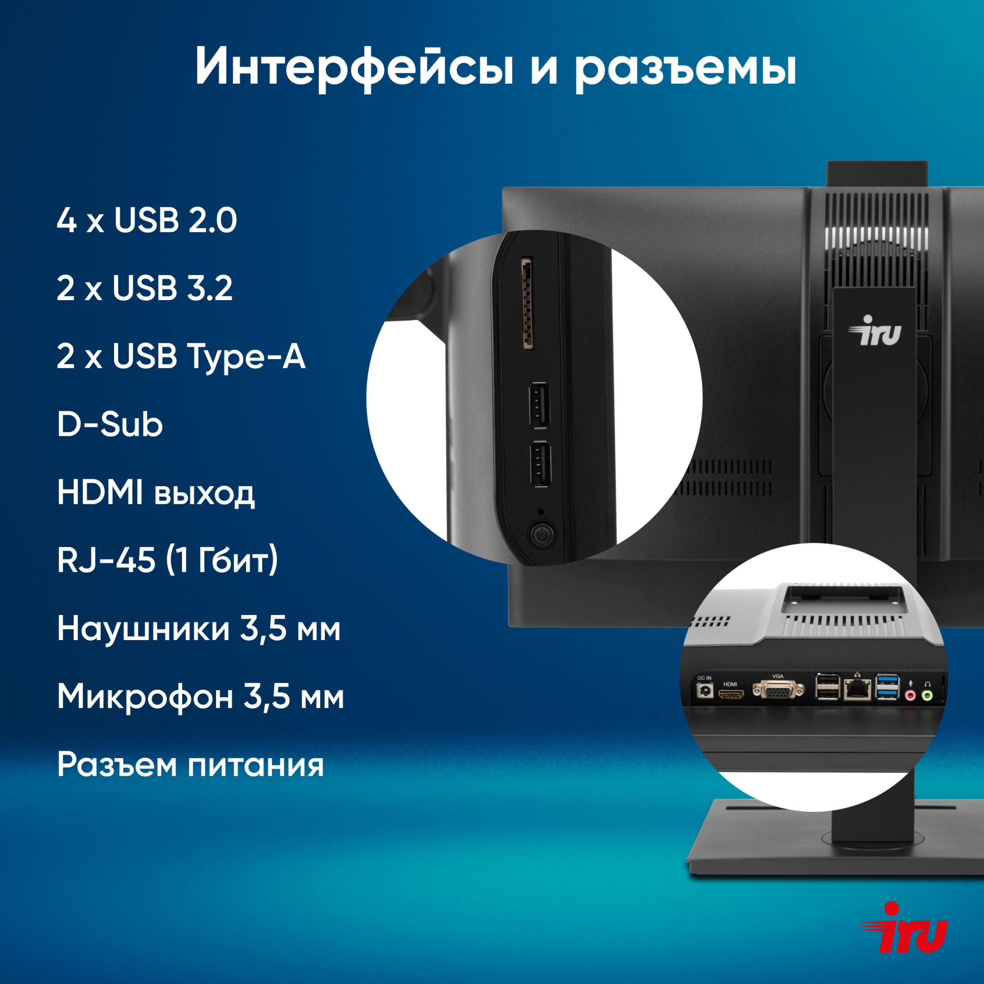 Моноблок iRU - 23IM, 23.8", Intel Core i3 1215U 1200MHz, DDR4 8 ГБ, SSD 256 ГБ, Intel UHD Graphics, Wi-Fi, Bluetooth, чёрный, ОС не установлена, Monoblock, 1972059